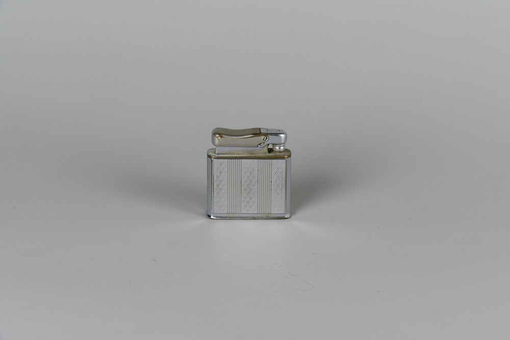 Aansteker van vernikkeld metaal met streep en ruit p...