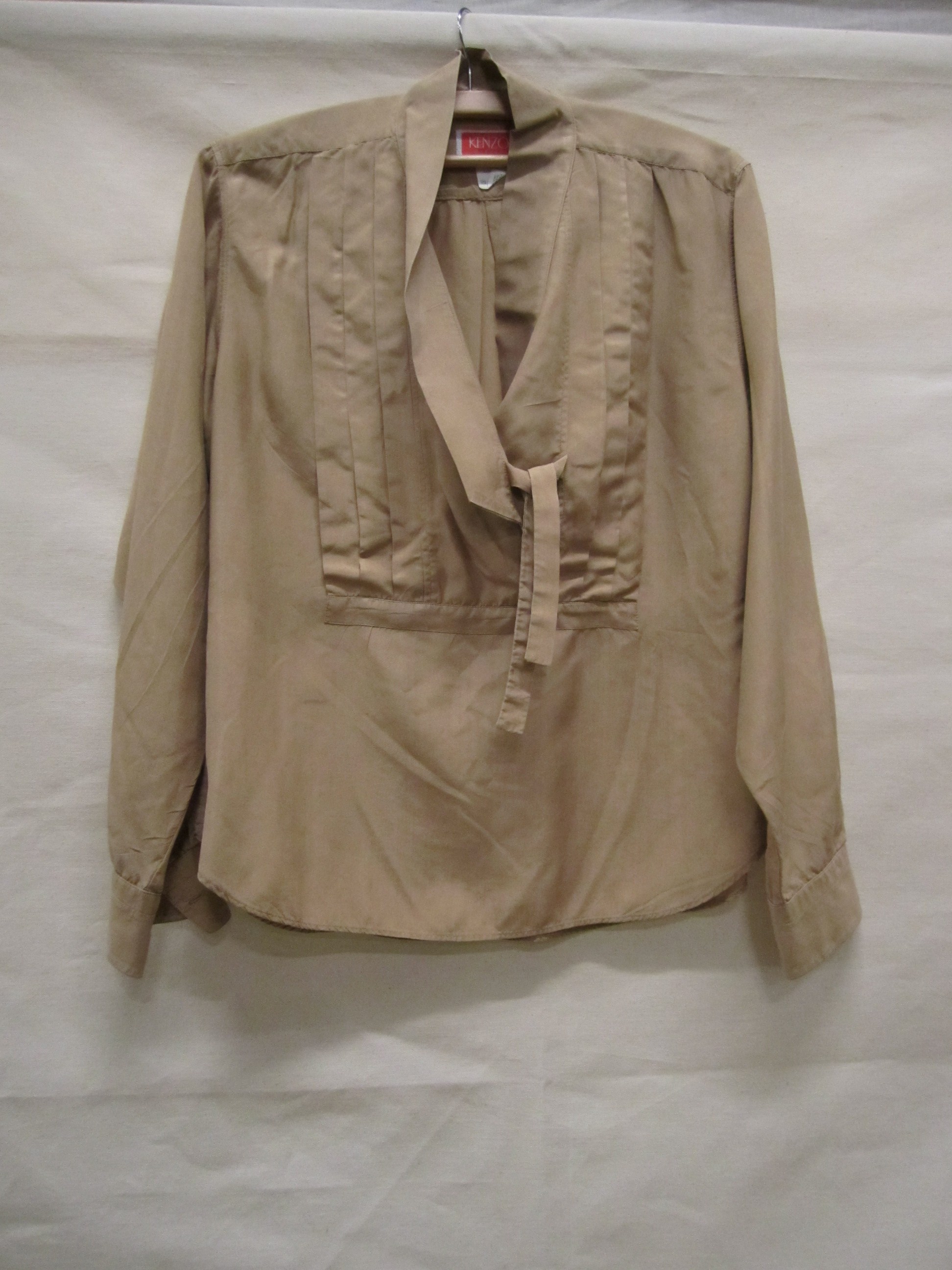 Blouse van beige zijde met 'plastron' van pl...