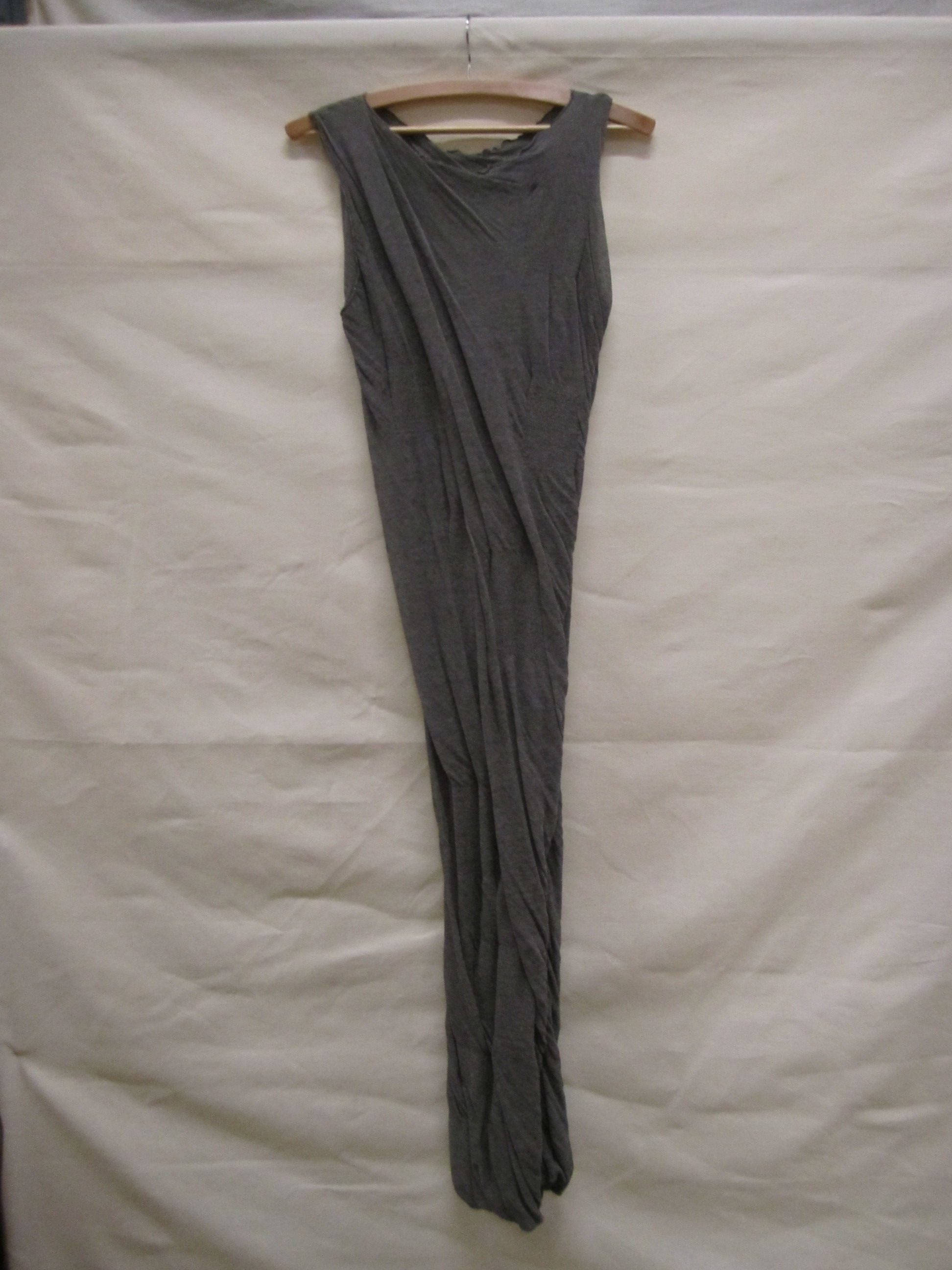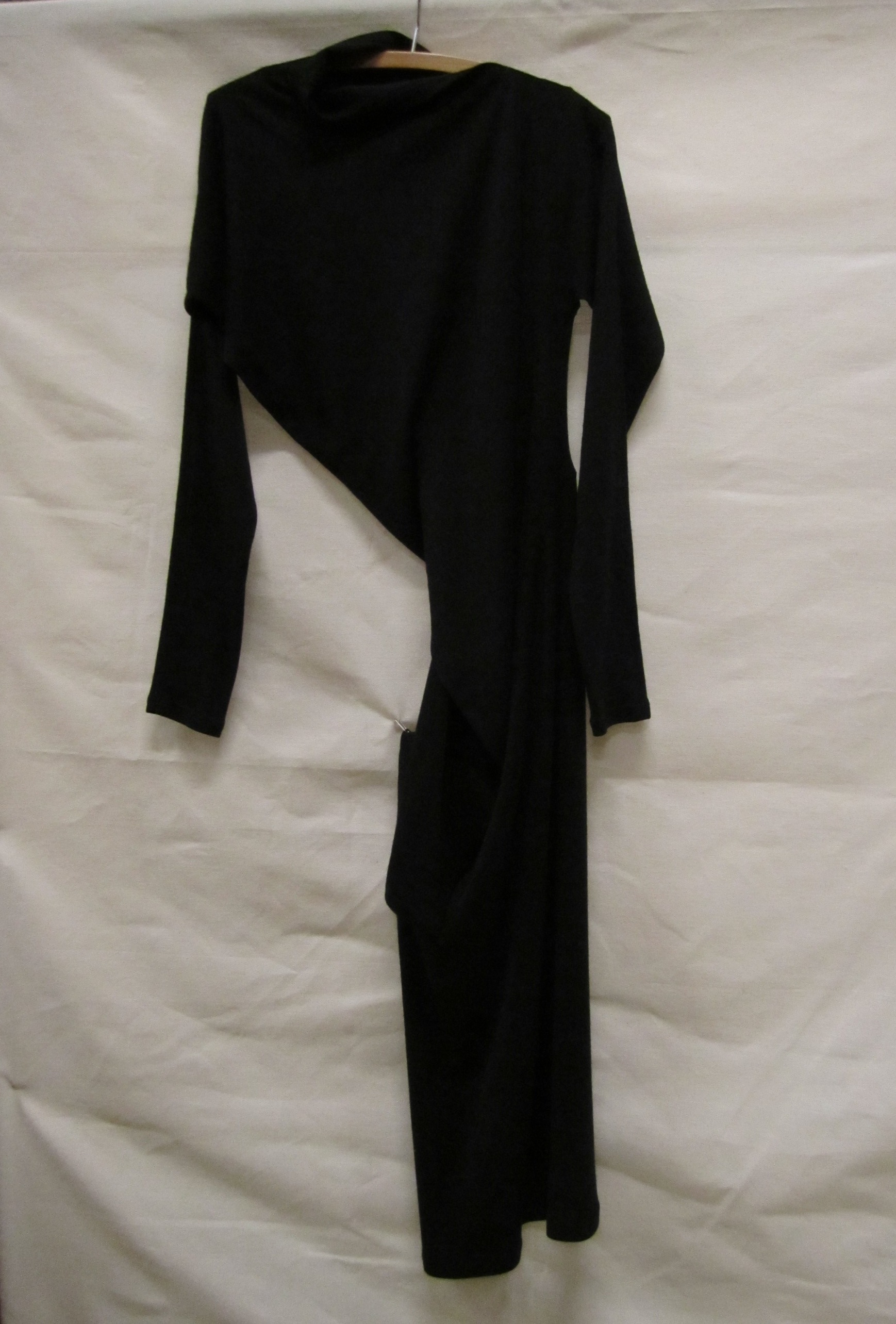 Jurk van zwarte machinaal gebreide wol, asymmetrisch...