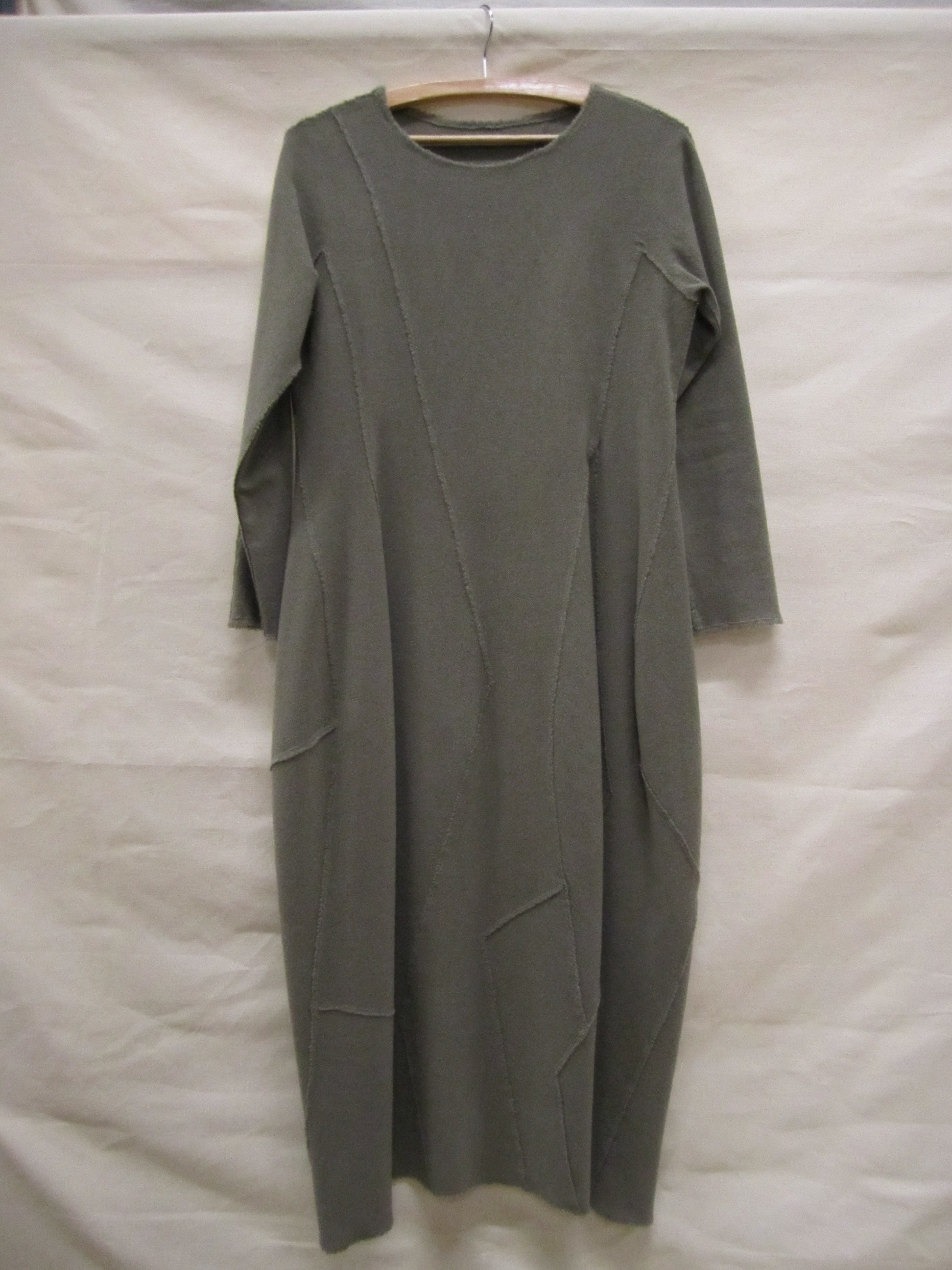 Jurk van mosgroene geruwde wol, bestaande uit 15 sto...