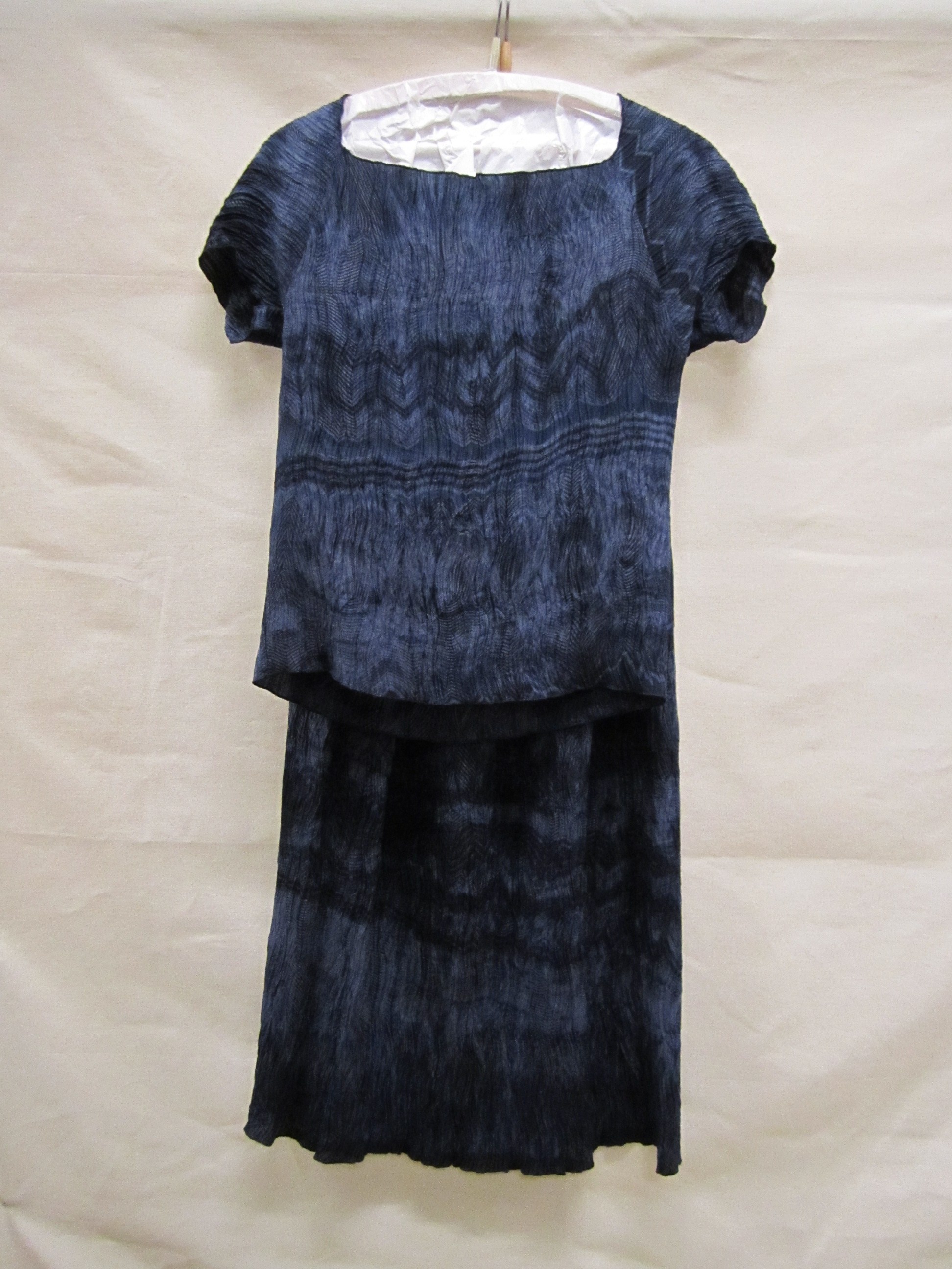 Ensemble van zijde met blauw fond en donkerblauwe li...