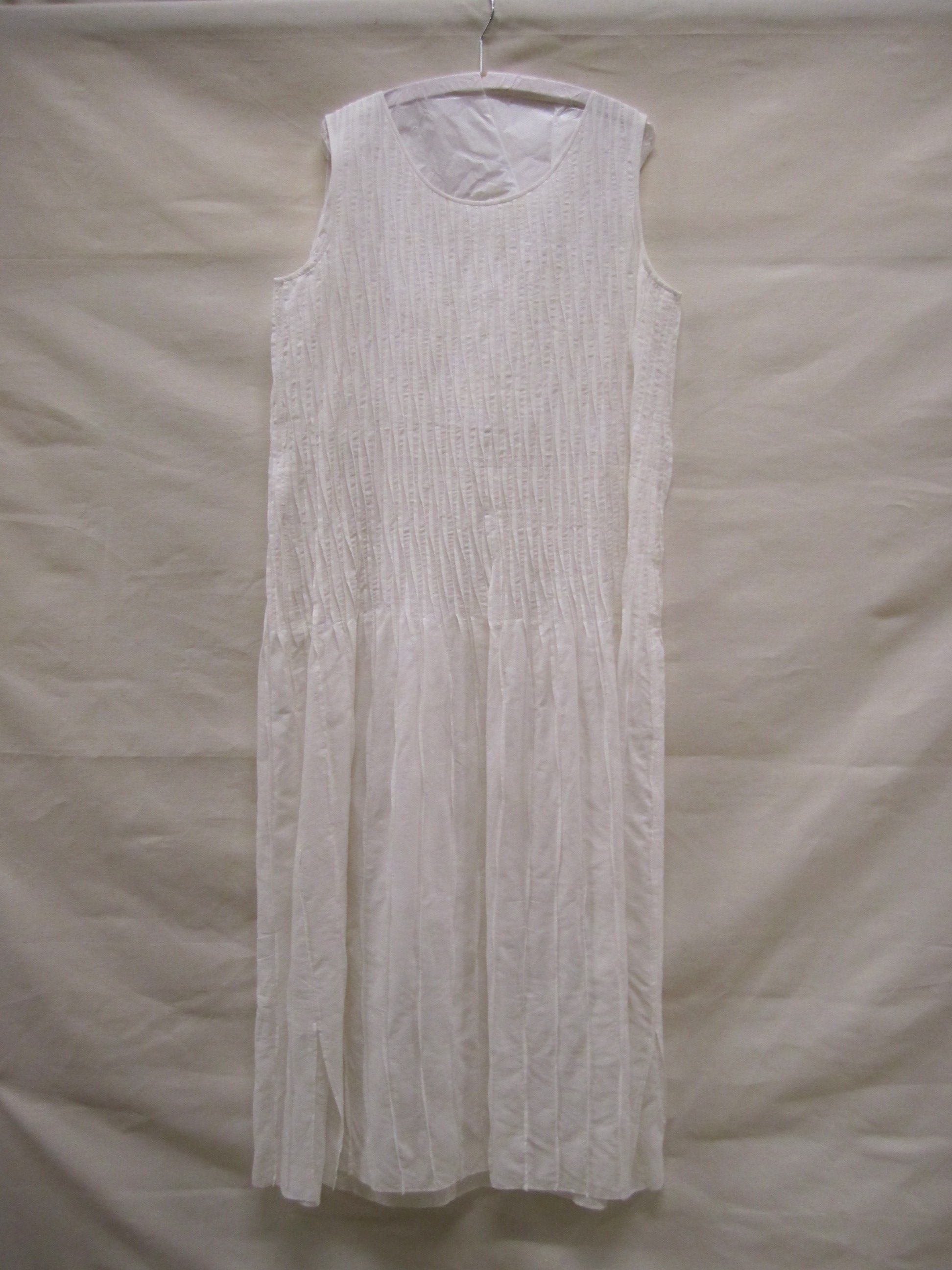 Jurk van wit katoen met verticale oprijgjes op voor-...