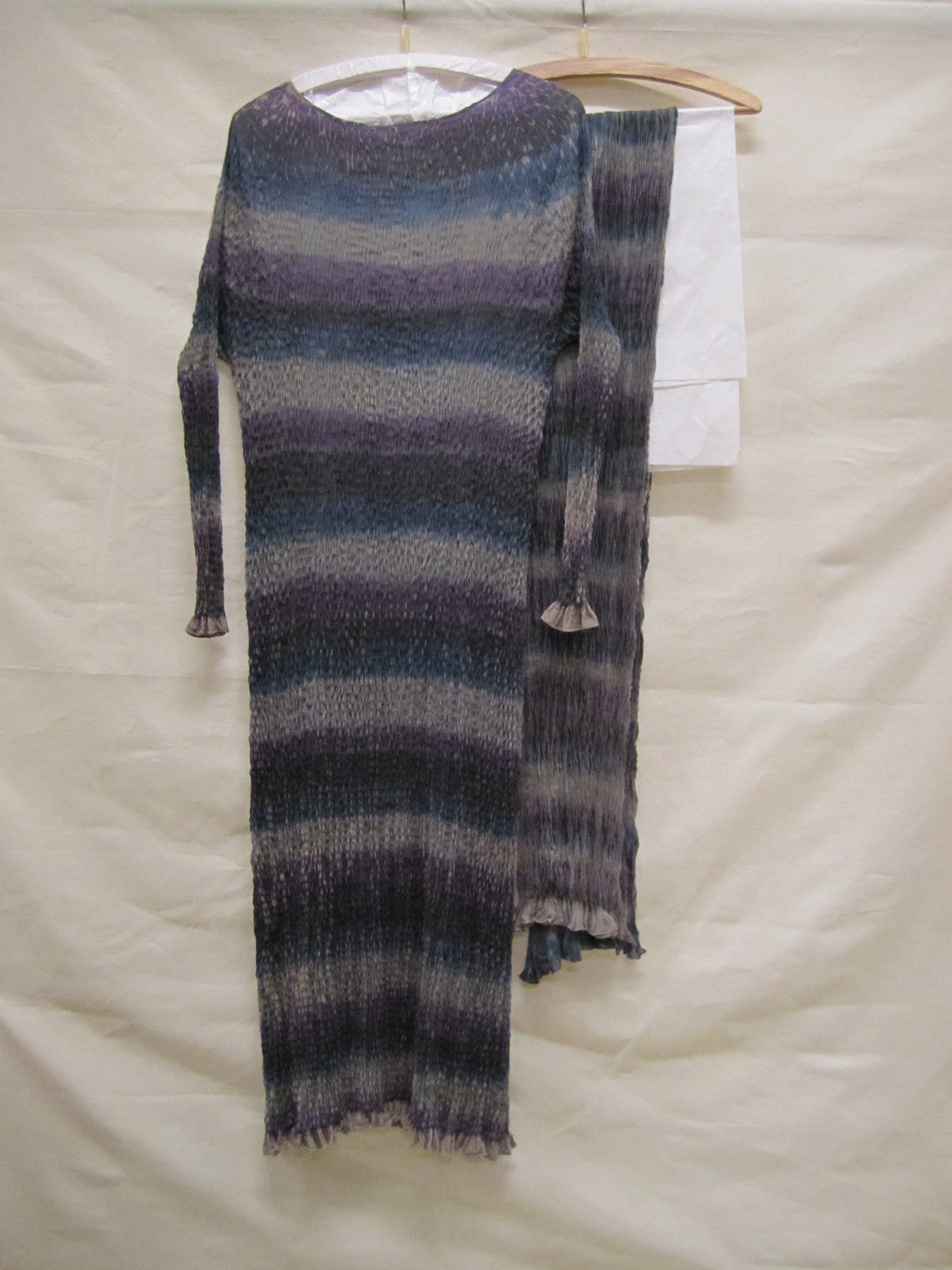 Jurk van handgeschilderde zijde met stiksel van hori...