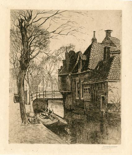 Ets van een gracht in Franeker met het Korendragersh...