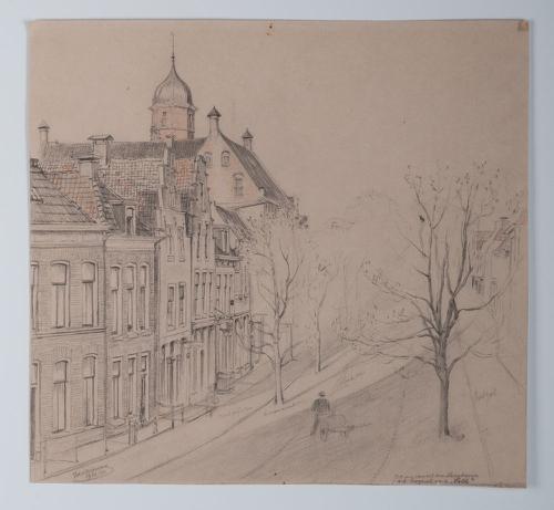 Tekening met potlood van de Voorstraat in Franeker d...