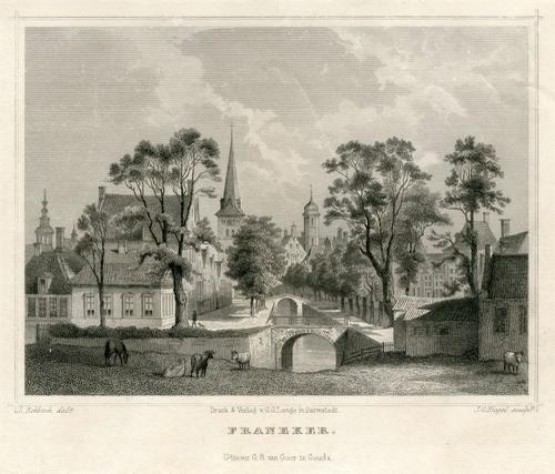 Staalgravure van de Voorstraat in Franeker door Ludw...