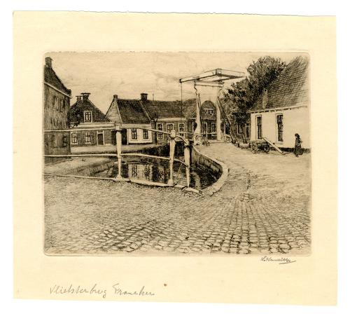 Ets van drie huizen aan het Vliet in Franeker door J...