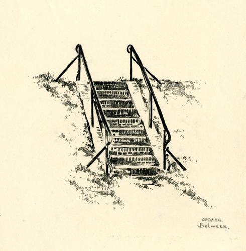 Tekening met potlood van een trapopgang aan het Bolw...