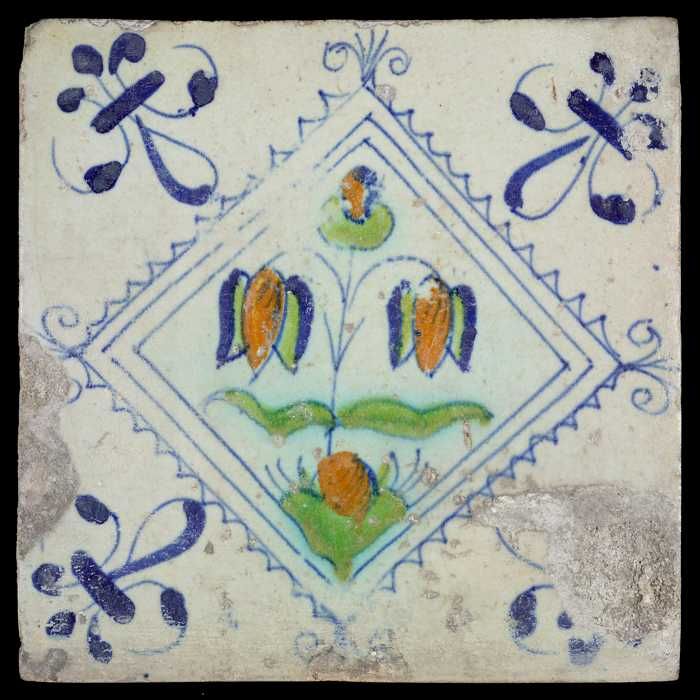 Bloemtegel met drietulp in gekarteld vierkant, polyc...