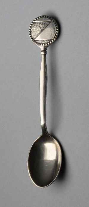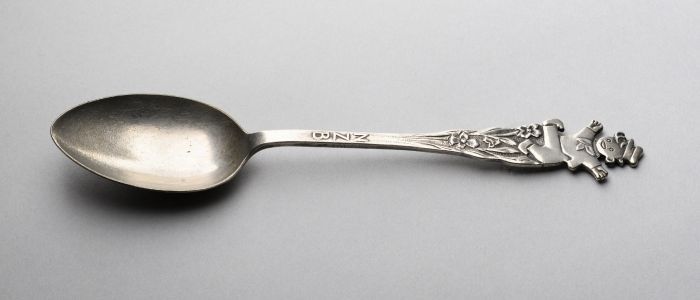 Verzilverd theelepeltje met afbeelding van het IKAZI...