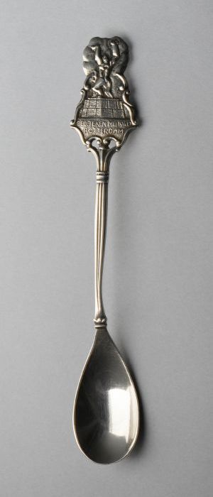 Verzilverd theelepeltje met het beeld 'De verwoeste ...