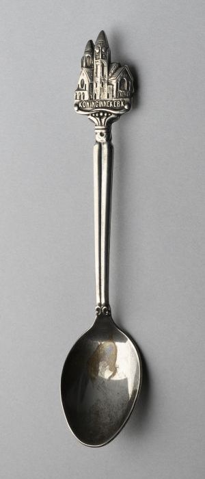 Verzilverd theelepeltje met afbeelding van de Koning...