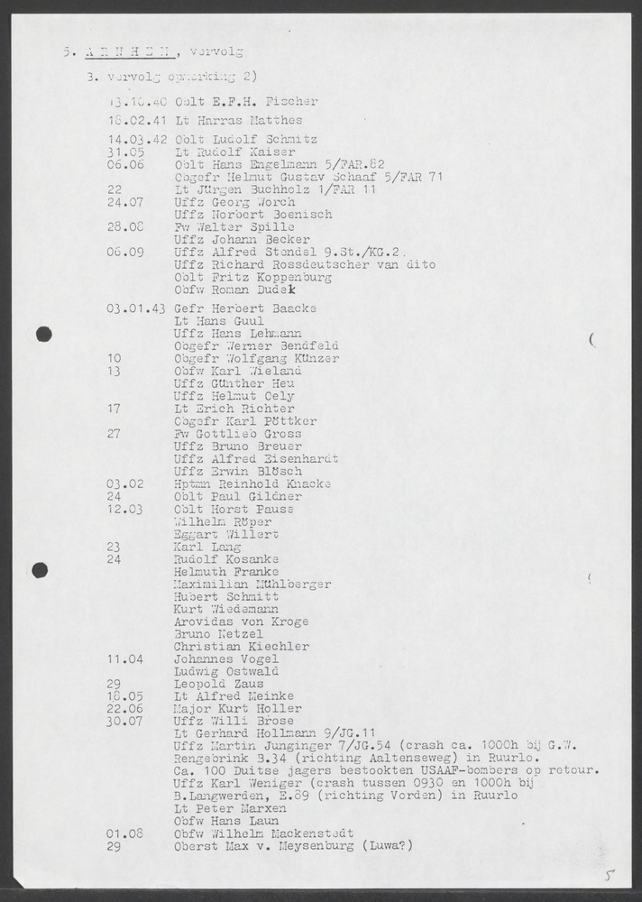 Overzicht Duitse gesneuvelden, begraven in Arnhem