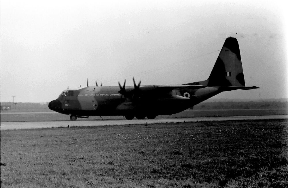 Lockheed C-130K Royal Air Force 183 op de rolbaan.