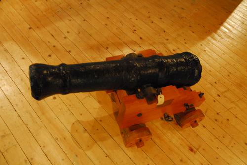 kanon, gietijzer, op houten paard