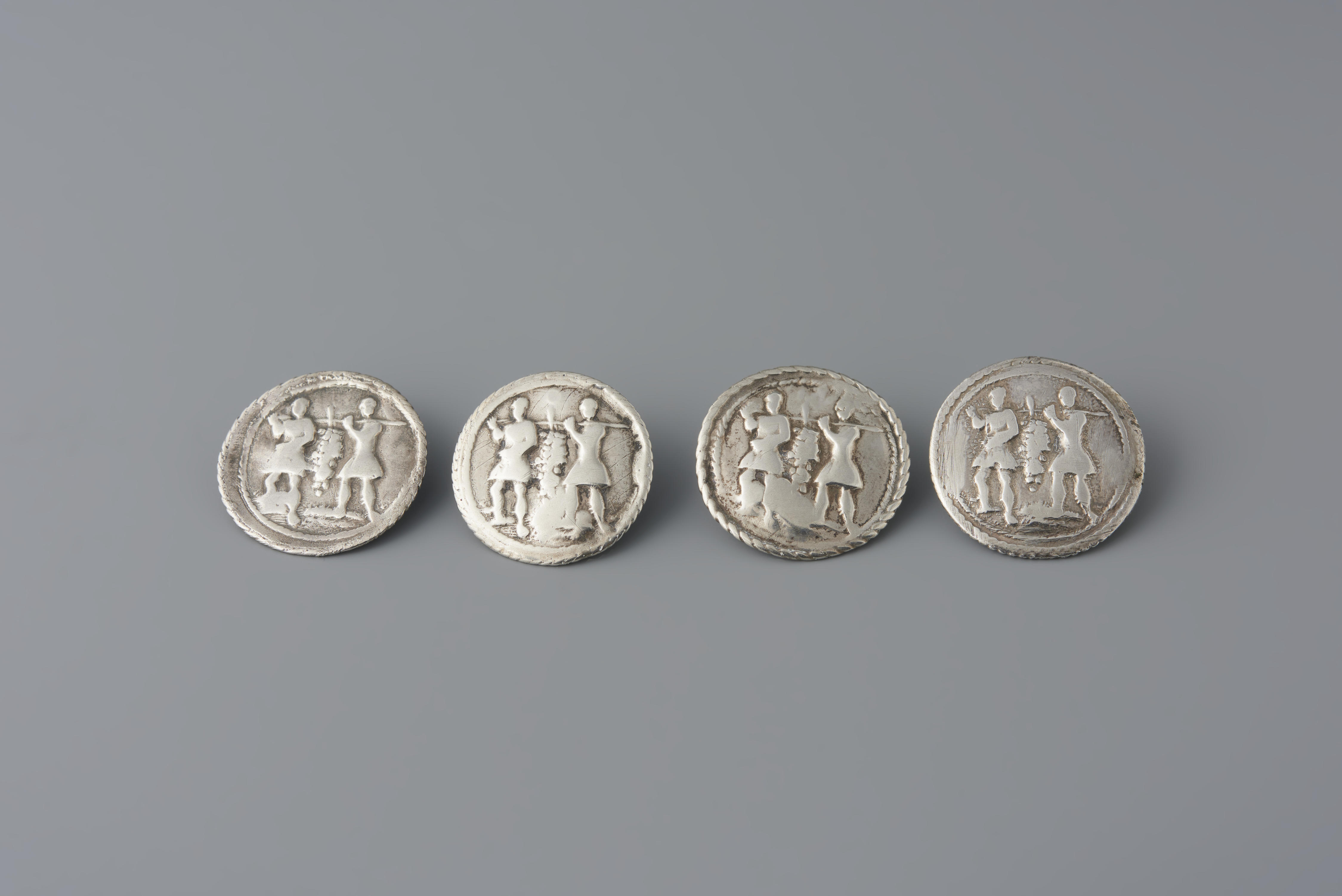 Vier zilveren knopen met voorstelling Verspieders Ka...