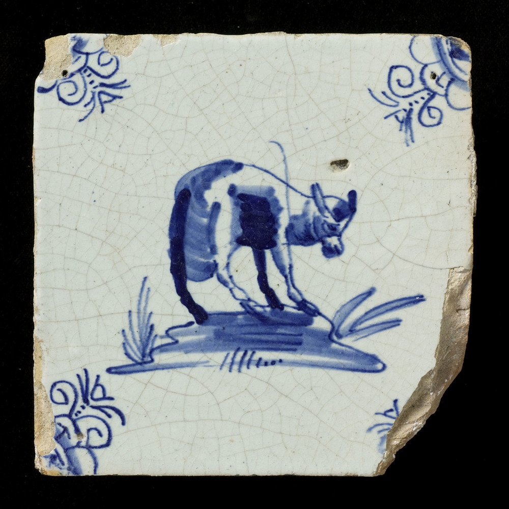 Tegel van keramiek, tinglazuur, voorstellende een la...