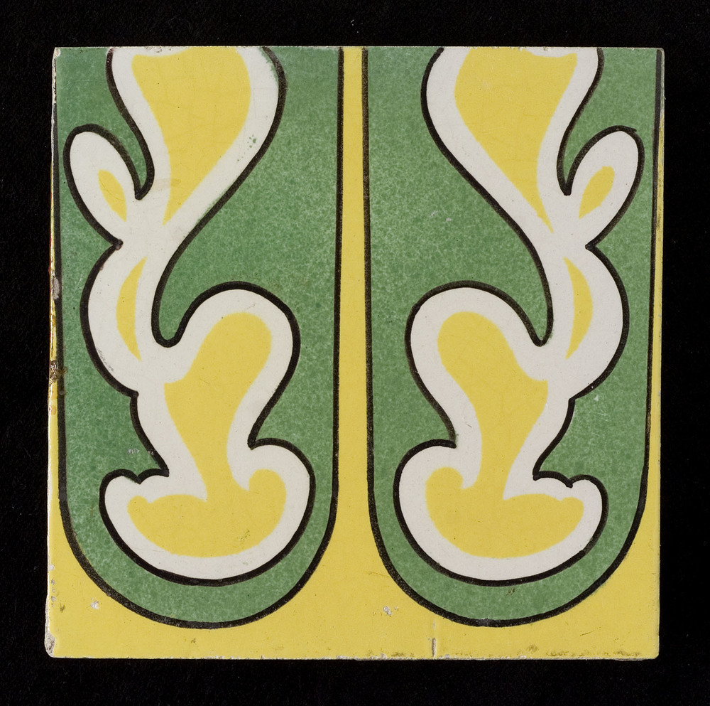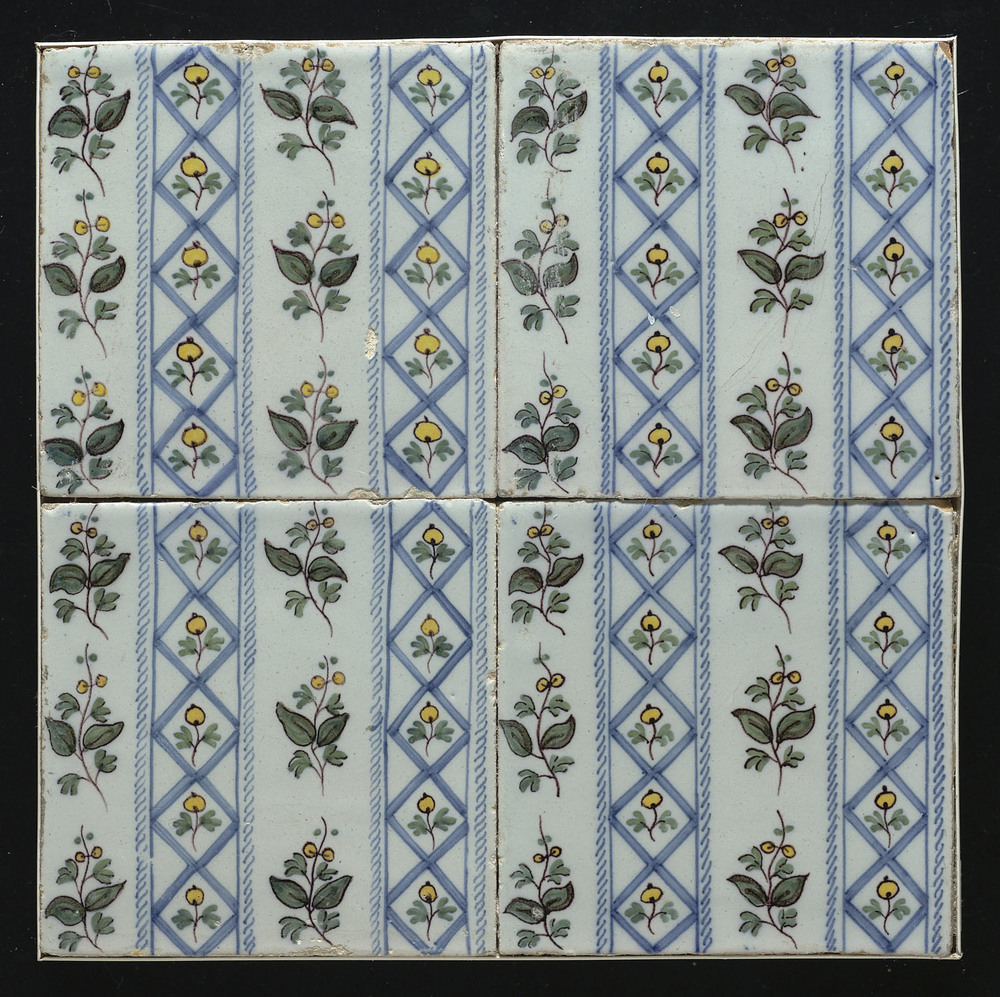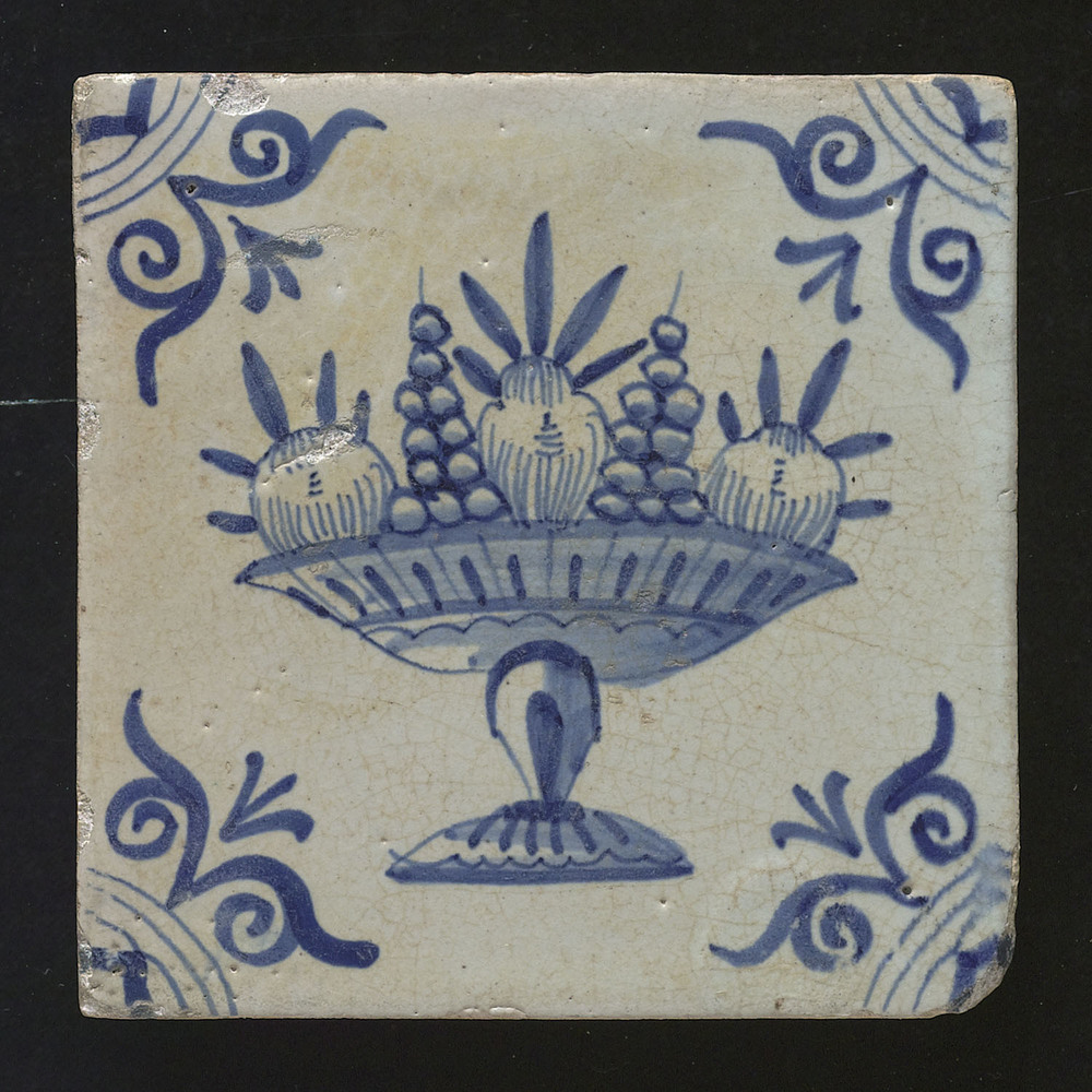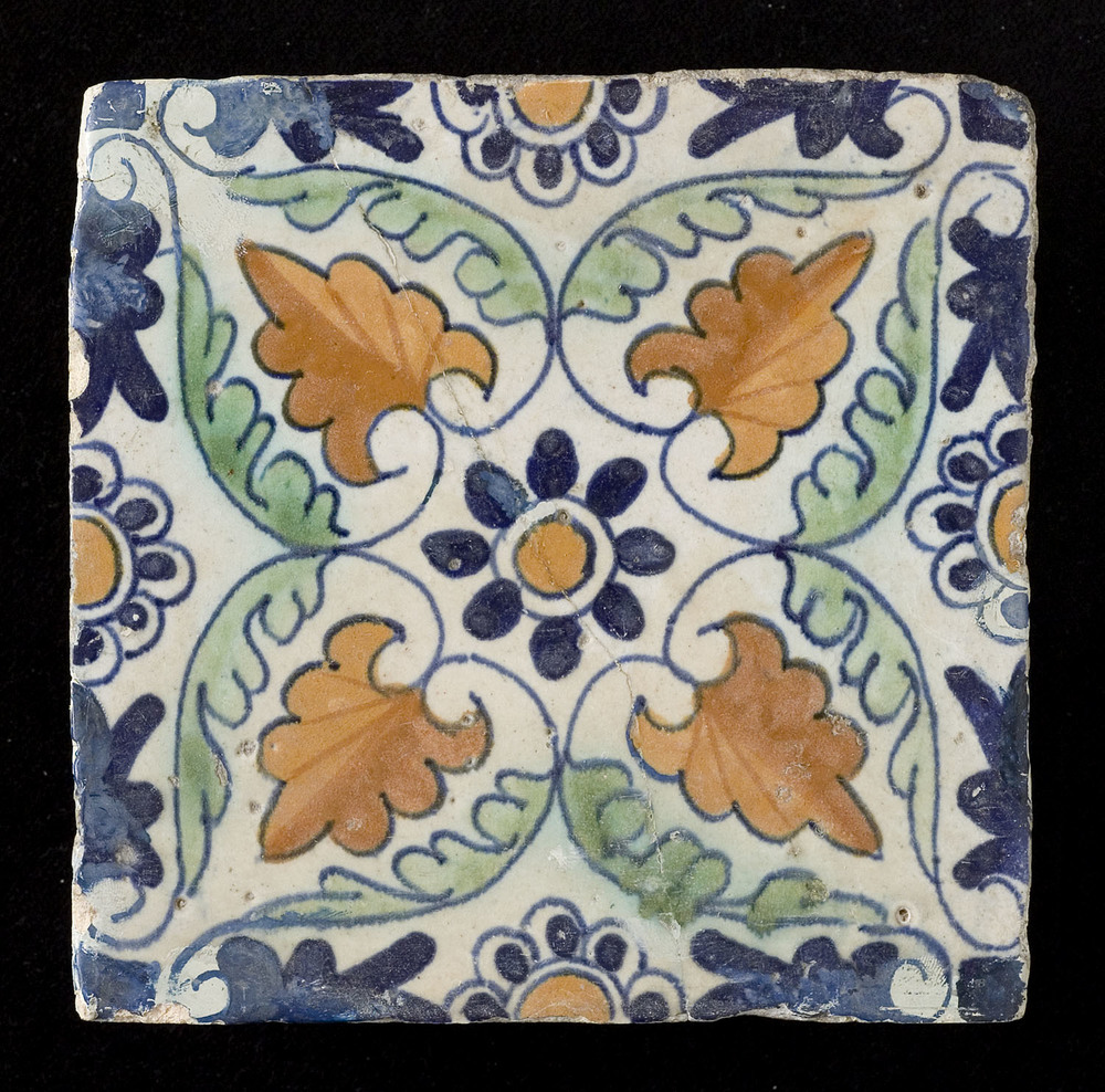 Tegel van tinglazuur, met voorstelling: ornament (de...