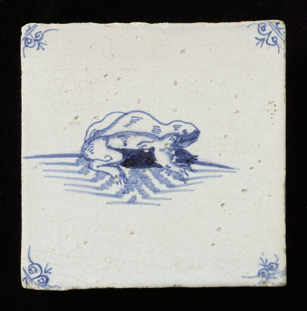 Tegel van keramiek in onderglazuur, voorstellende: r...