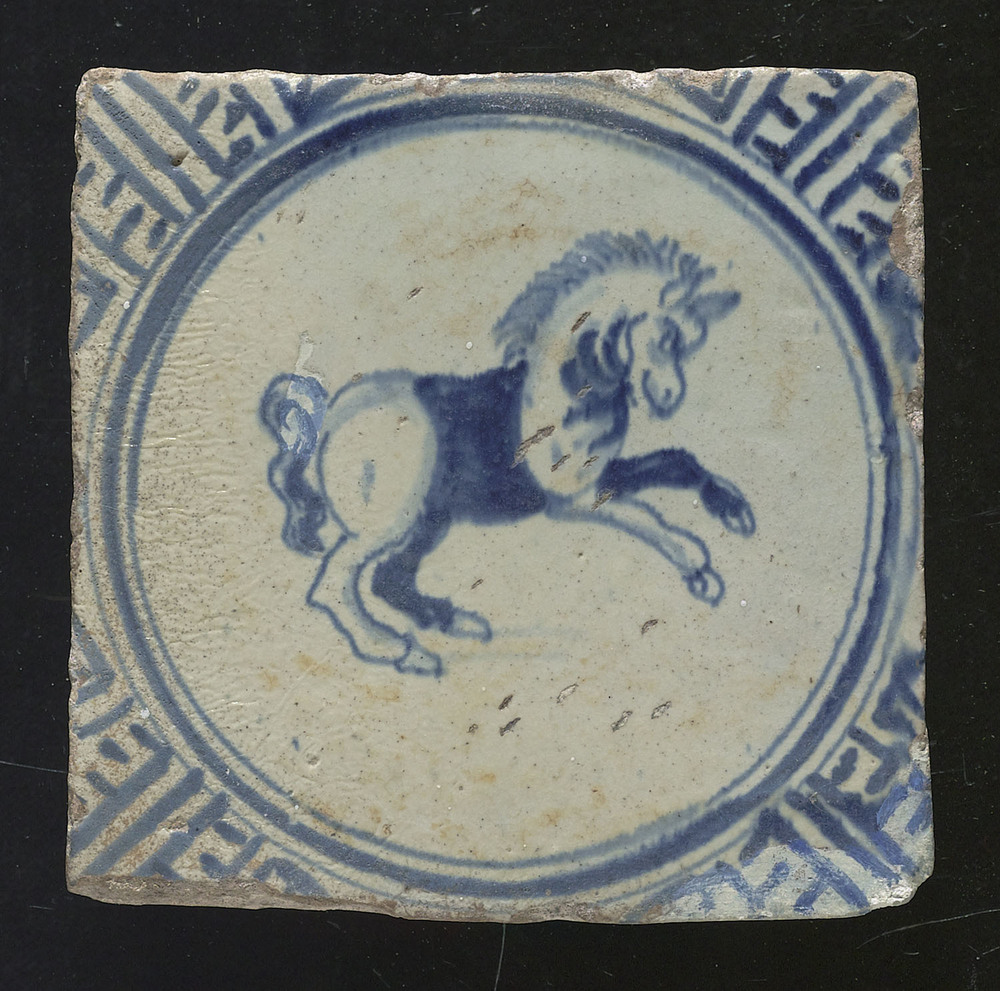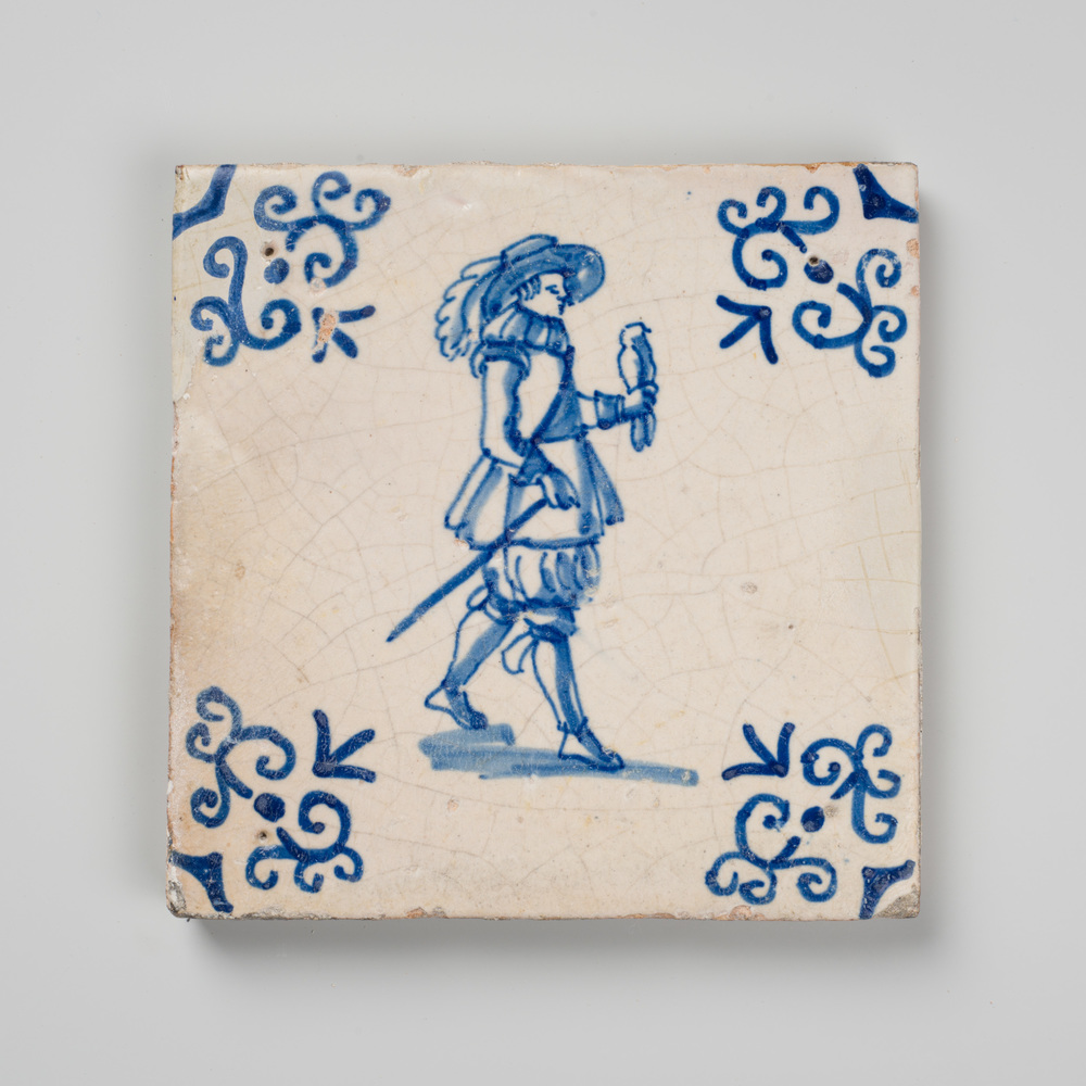 tegel van keramiek met tinglazuur, voorstellende: He...
