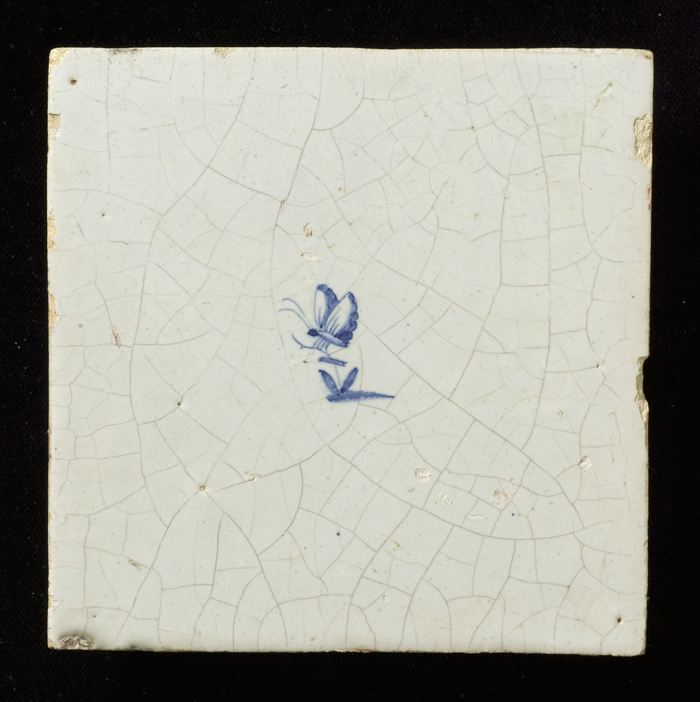 Tegel in tinglazuur, voorstellende vlindertje, gemaa...
