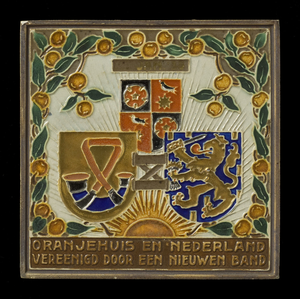 tegel van keramiek met tinglazuur, voorstellende: or...