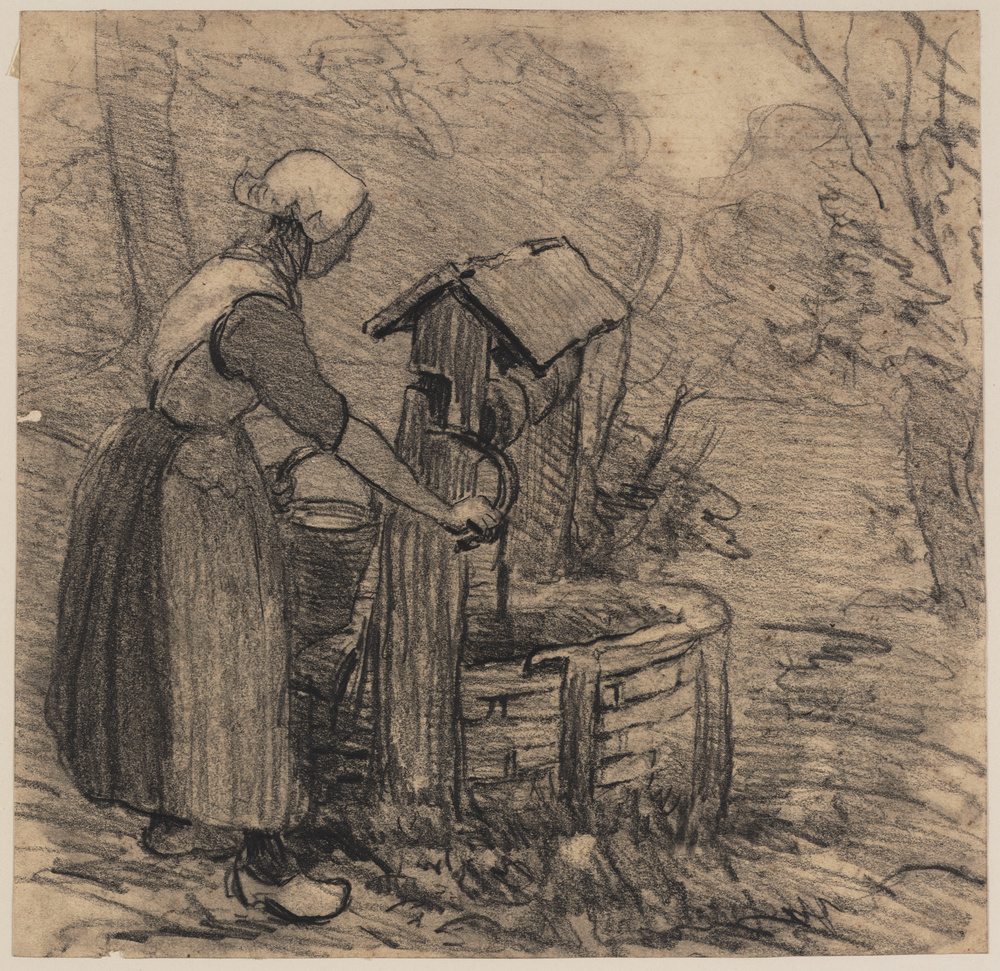 Boerin haalt water uit de put