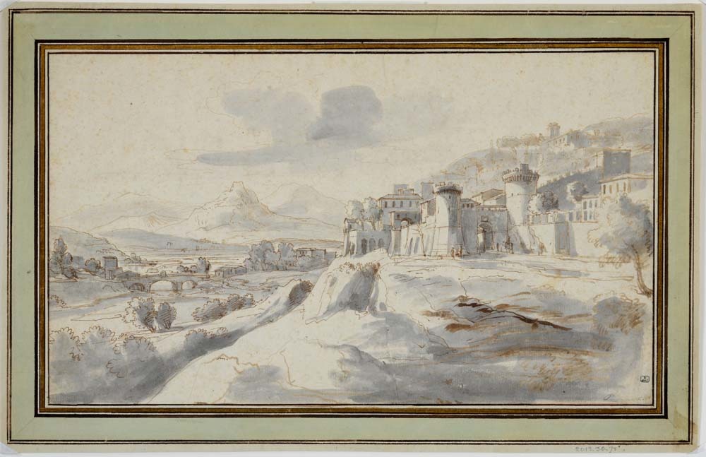 Berglandschap met ommuurde stad