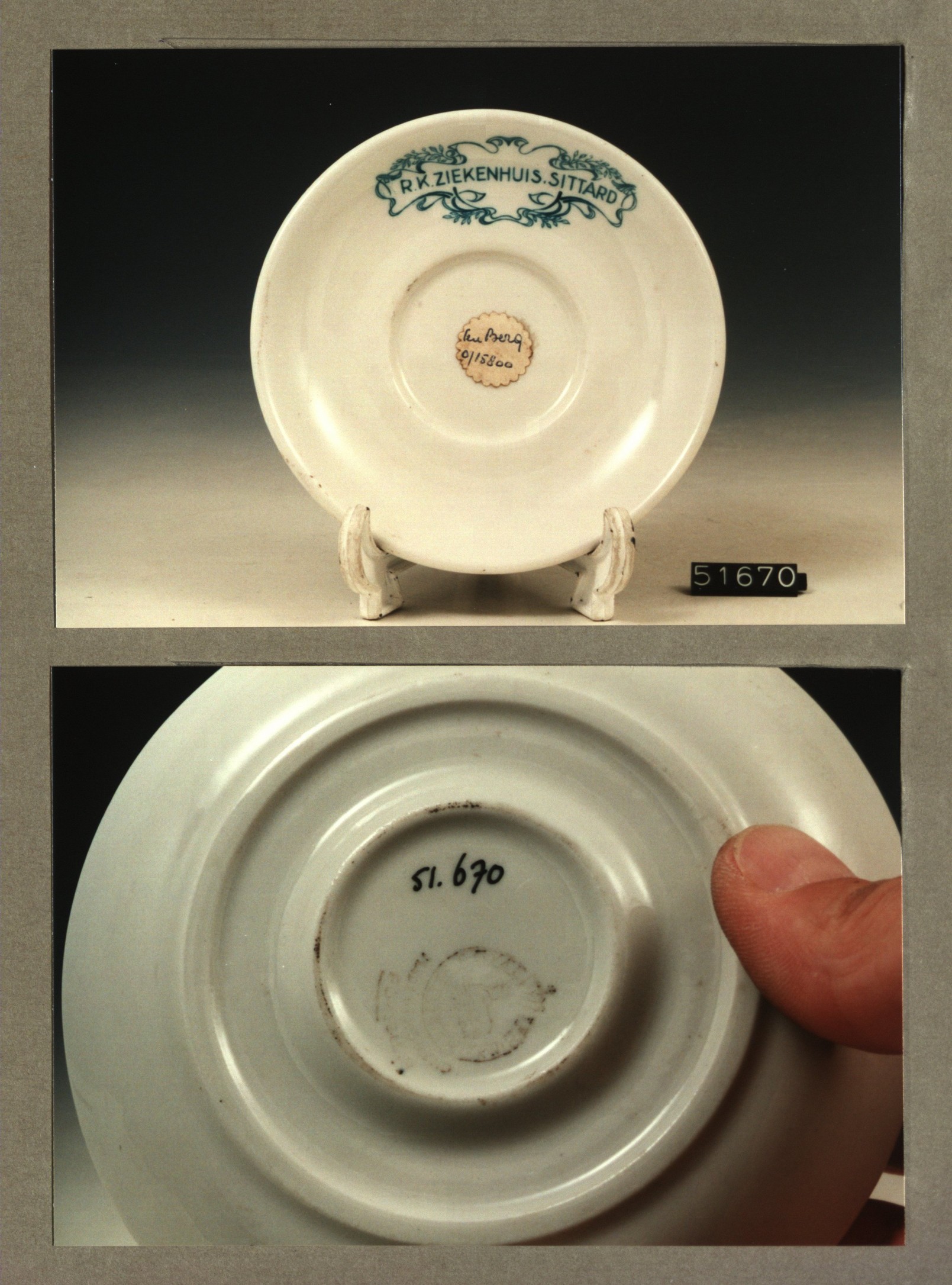 Schotel - plat, model P met decor Ziekenhuis RK Sittard