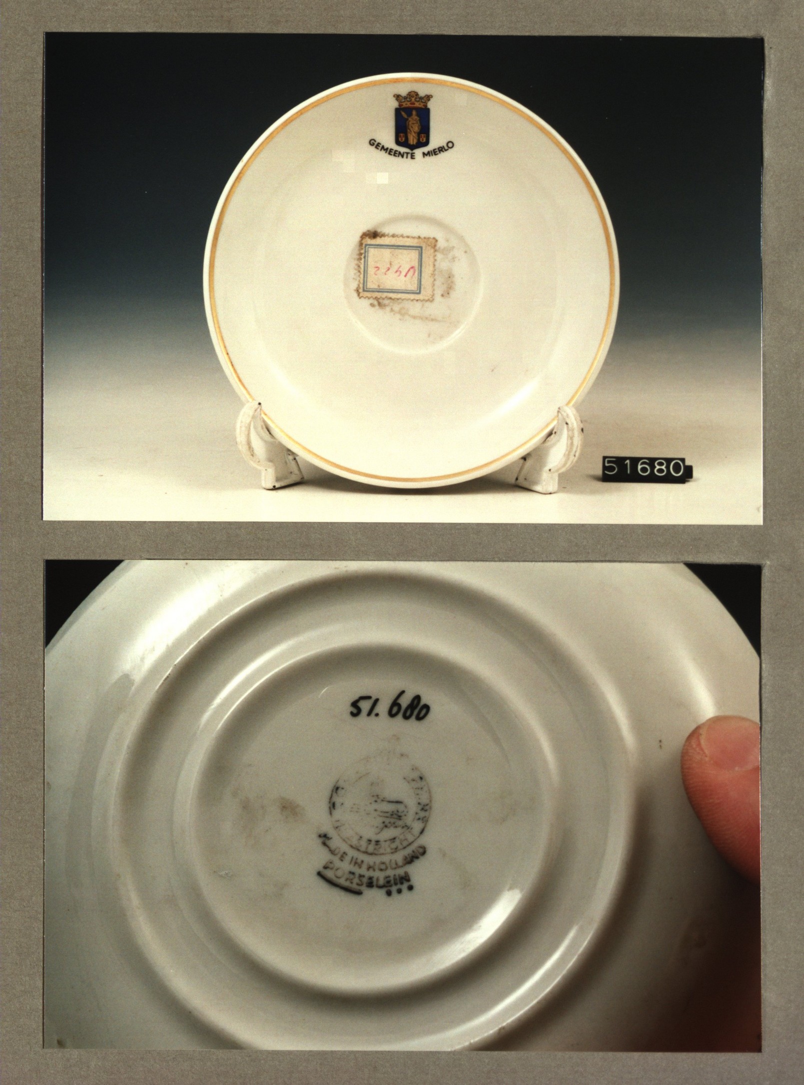 Schotel - plat, model F met decor Gemeente Mierlo