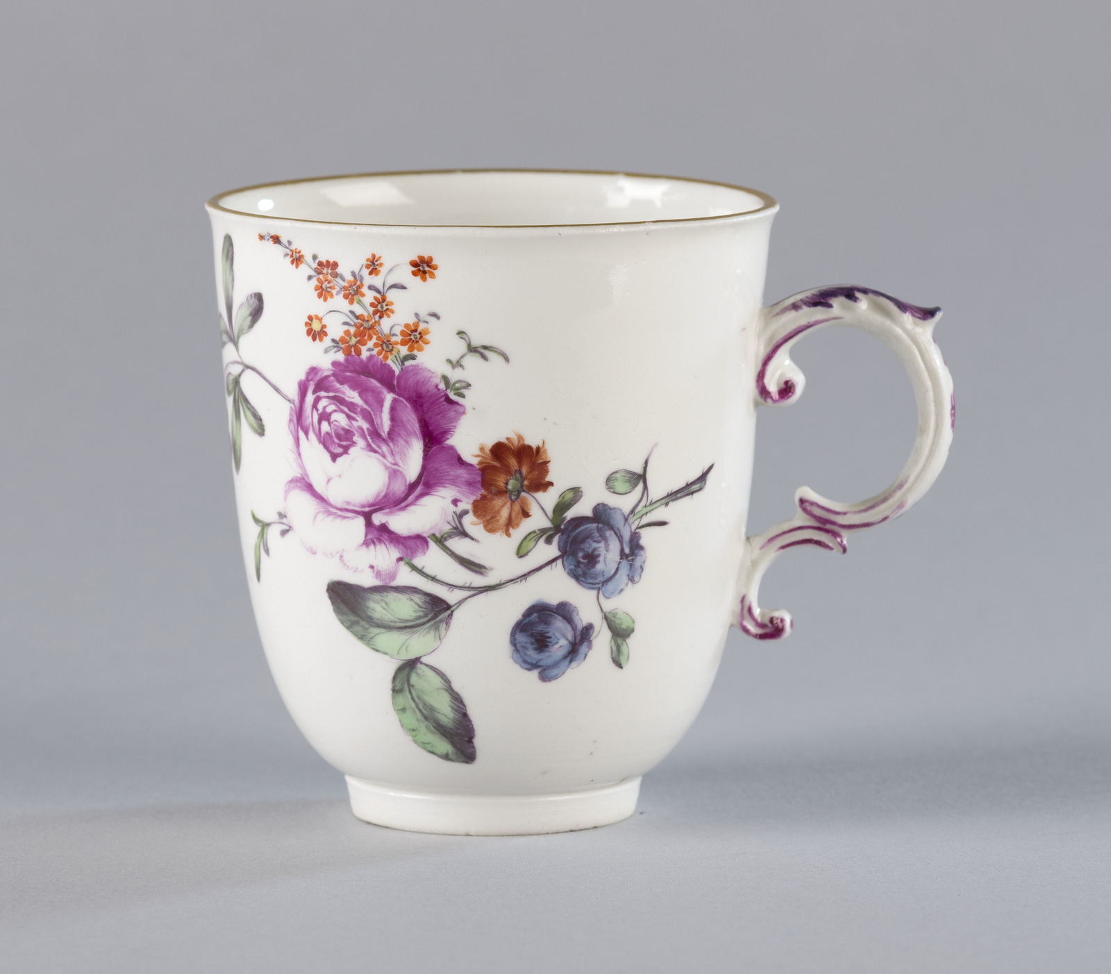 Kop en schotel van geglazuurd porselein met polychro...