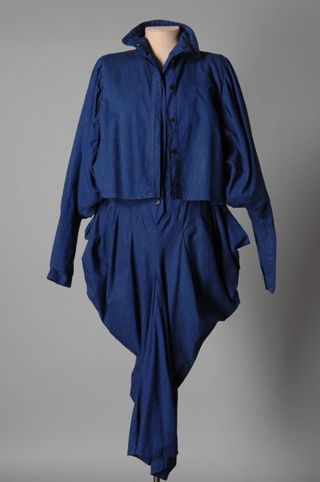 Maxi-japon met jasje, blauw katoen, zwart gemêleerd