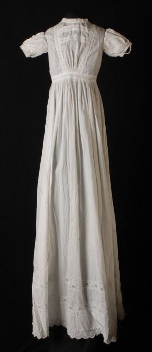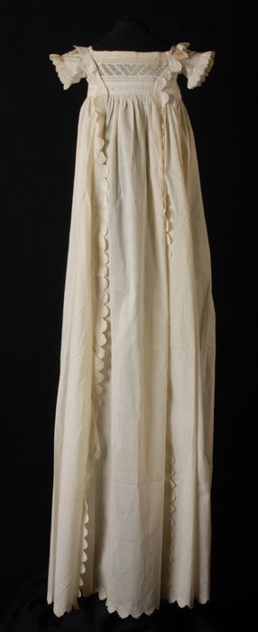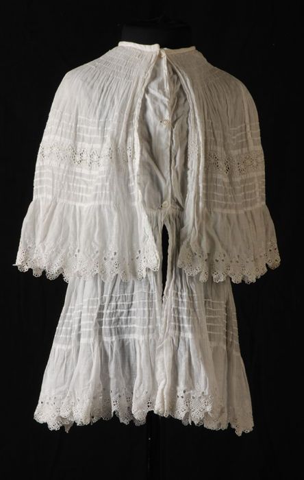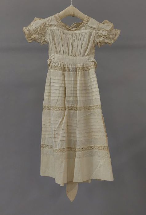 Kinderjurk van wit mousseline met oprijgjes en brode...