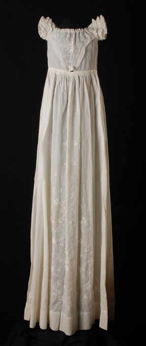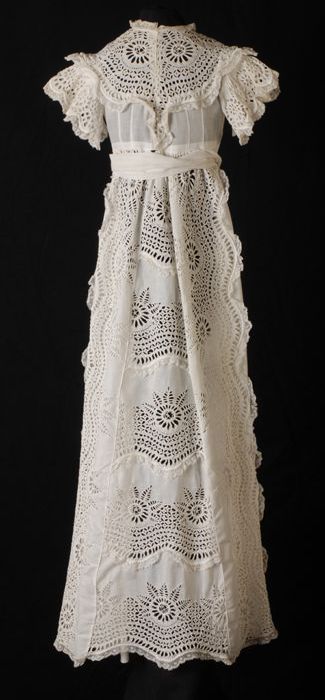 Lange wijduitlopende doopjurk van wit katoen, broder...