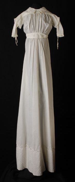 Lange doopjurk van wit katoen, V-vormig front, schou...