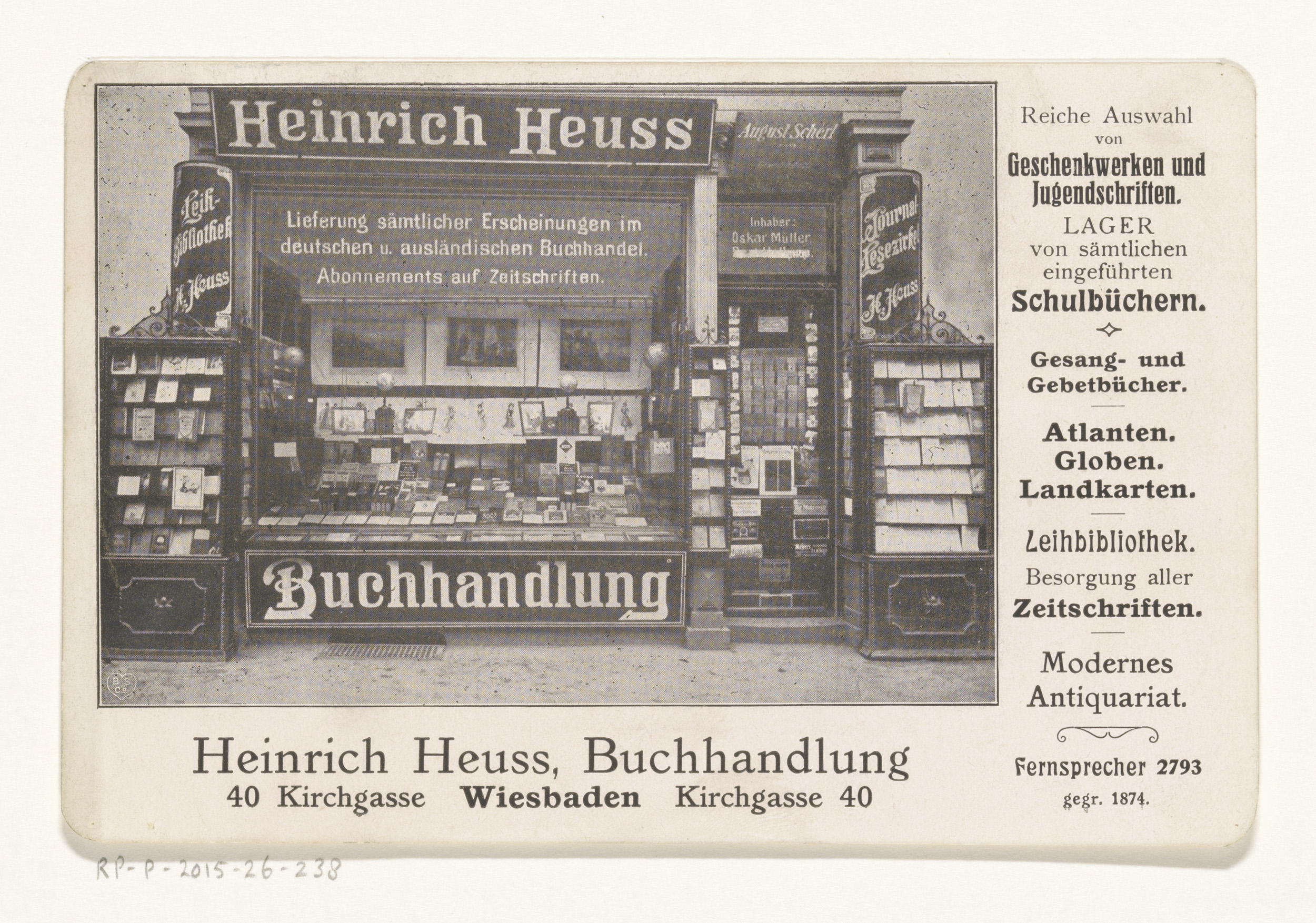 Visitekaartje van boekhandel Heinrich Heuss te Wiesb...