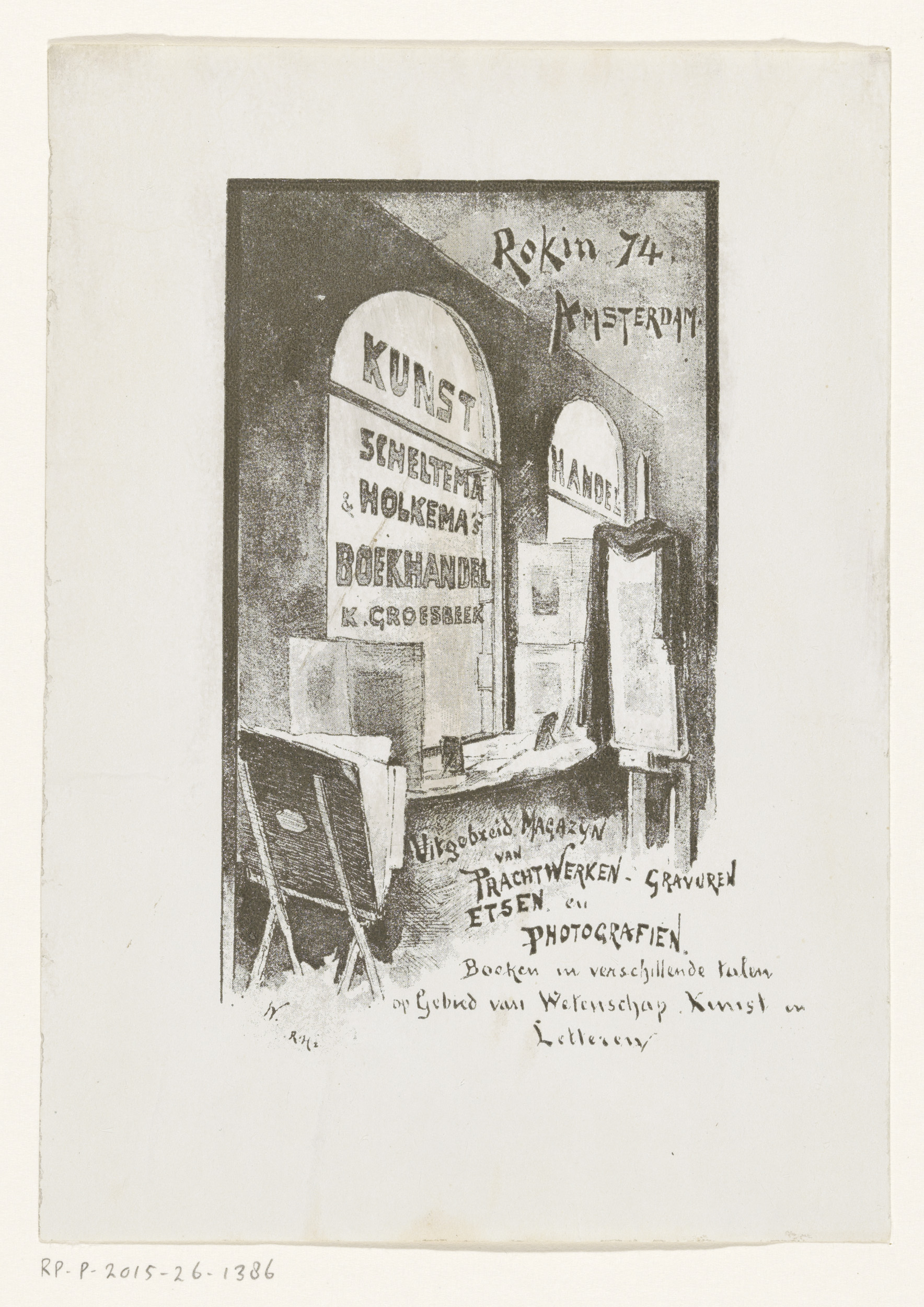 Binnenzijde van de etalage van kunsthandel Scheltema...