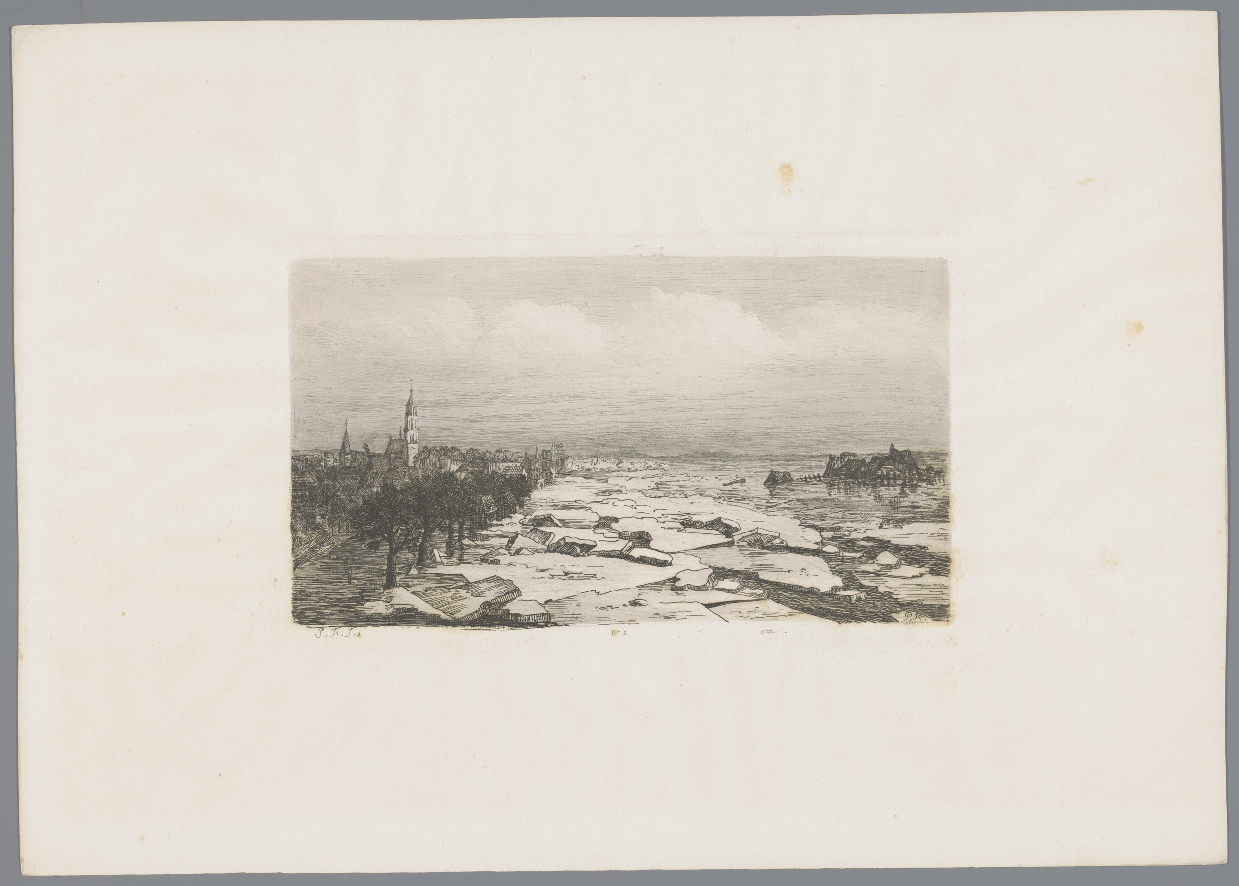 Kruiend ijs op de Rijn bij Arnhem, 1855