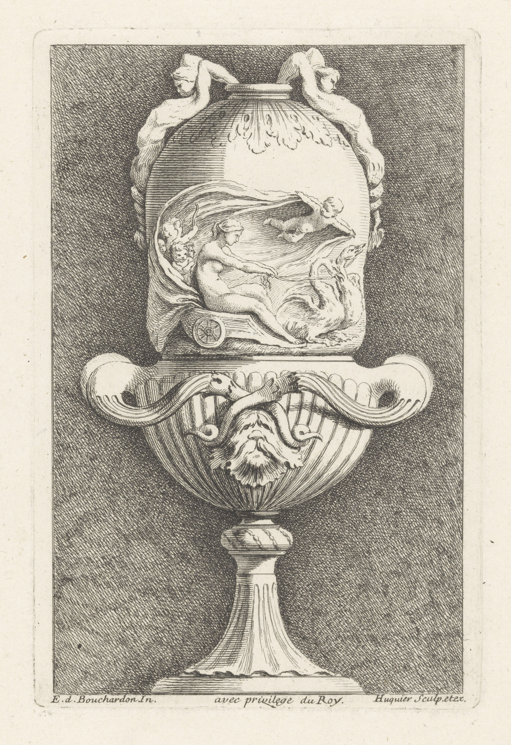 Vaas met Venus in een kar getrokken door zwanen