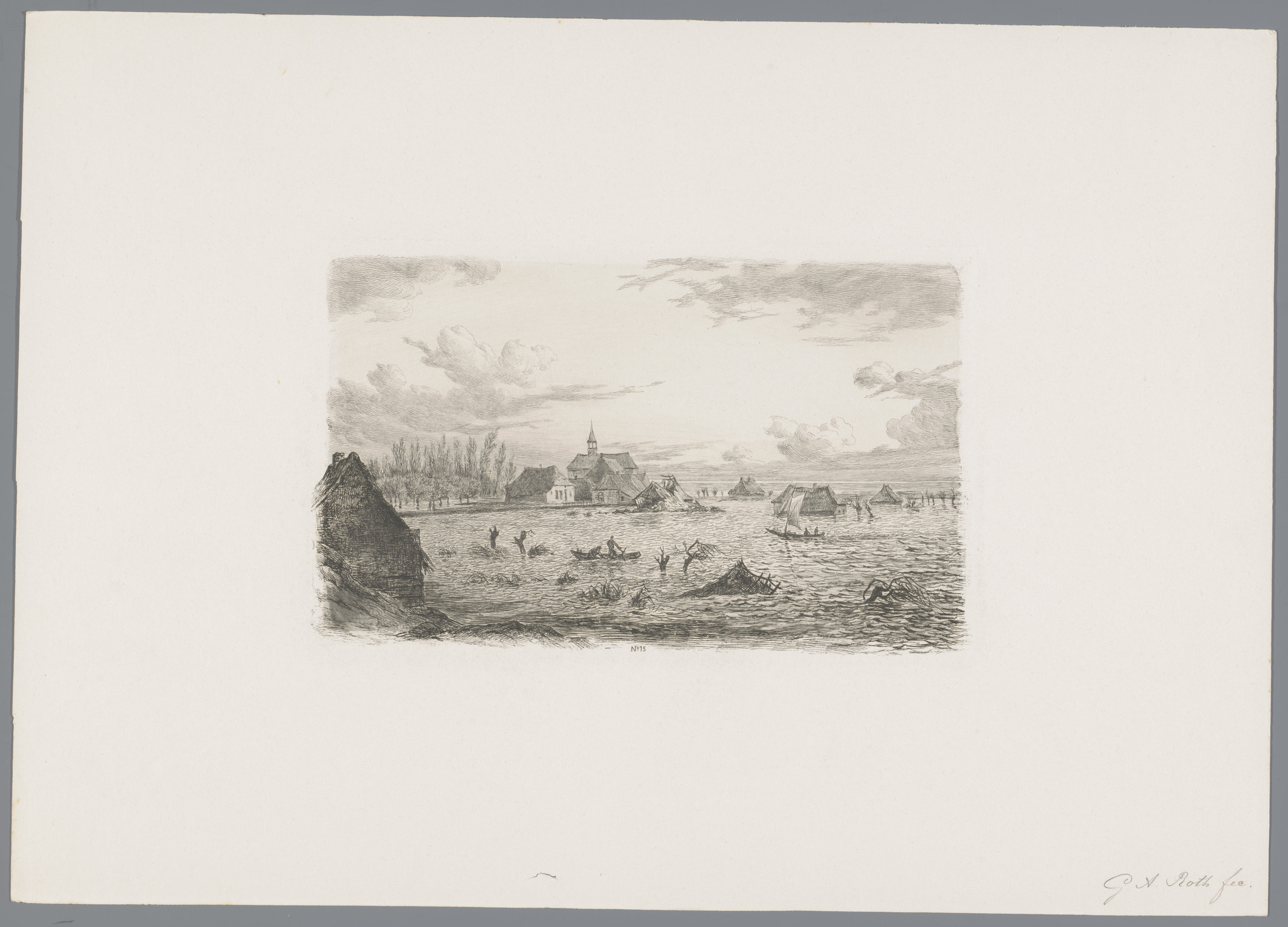 Doorgebroken dijk bij Opheusden, 1855