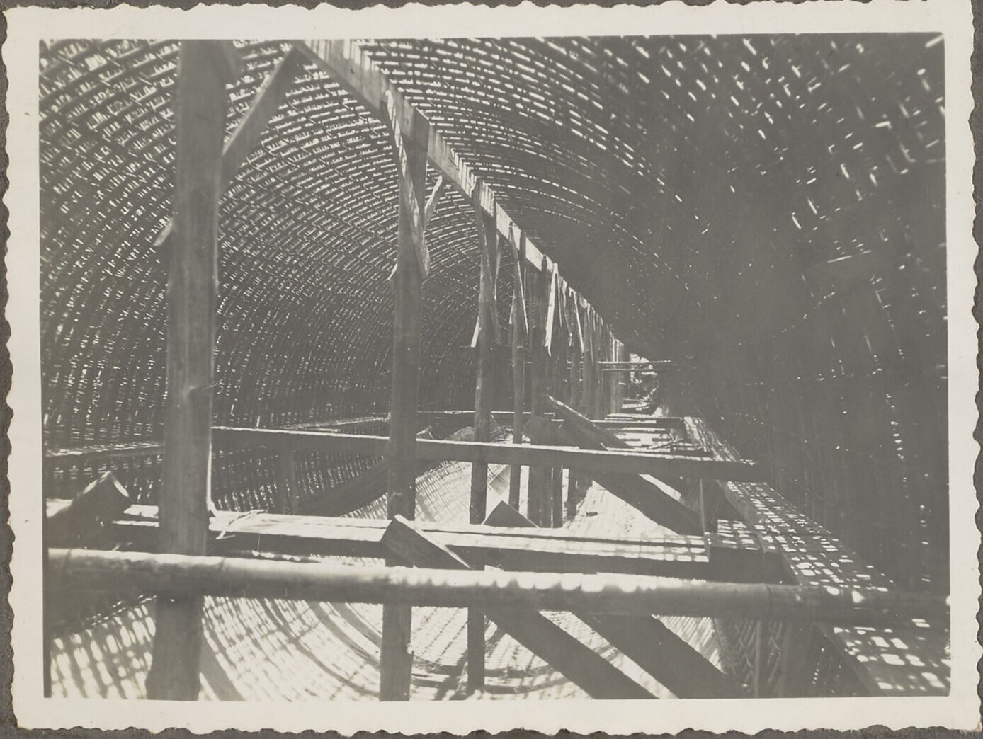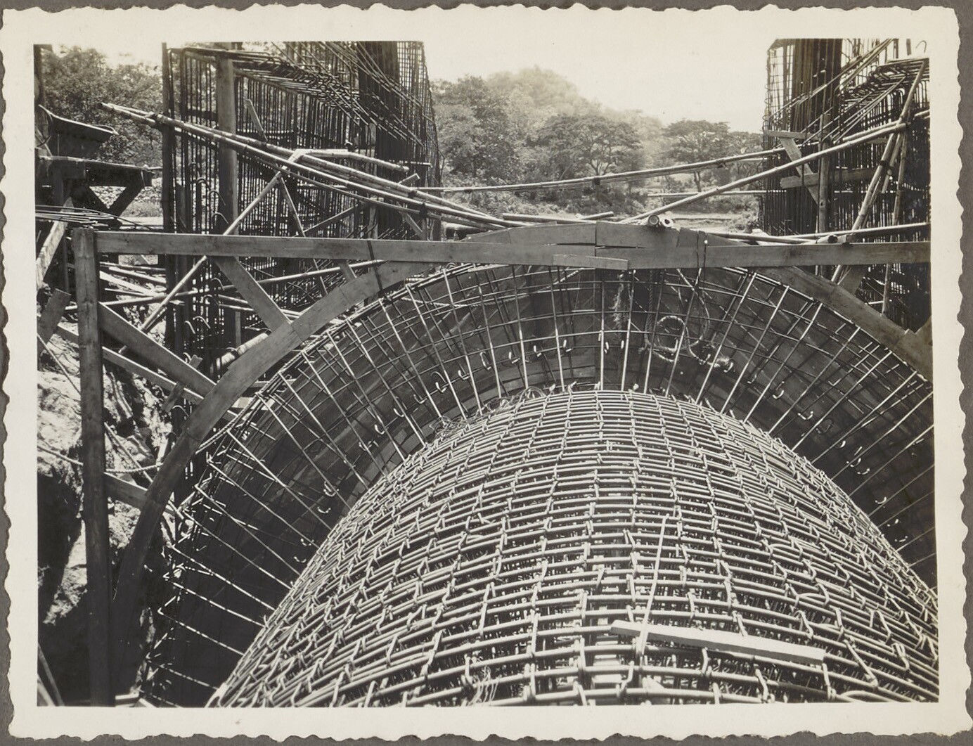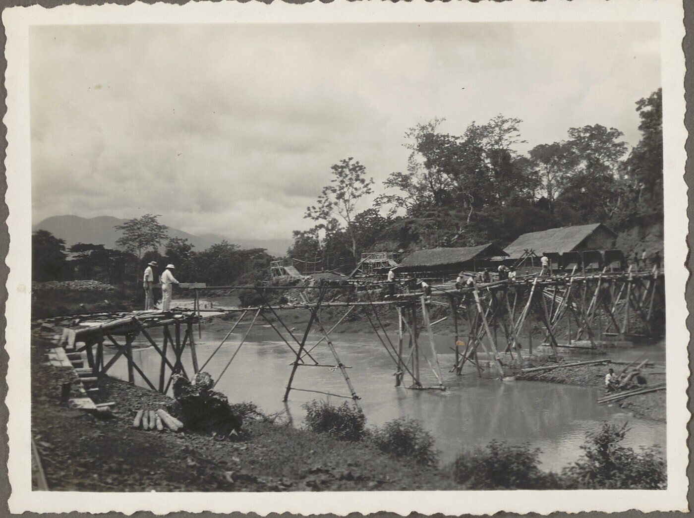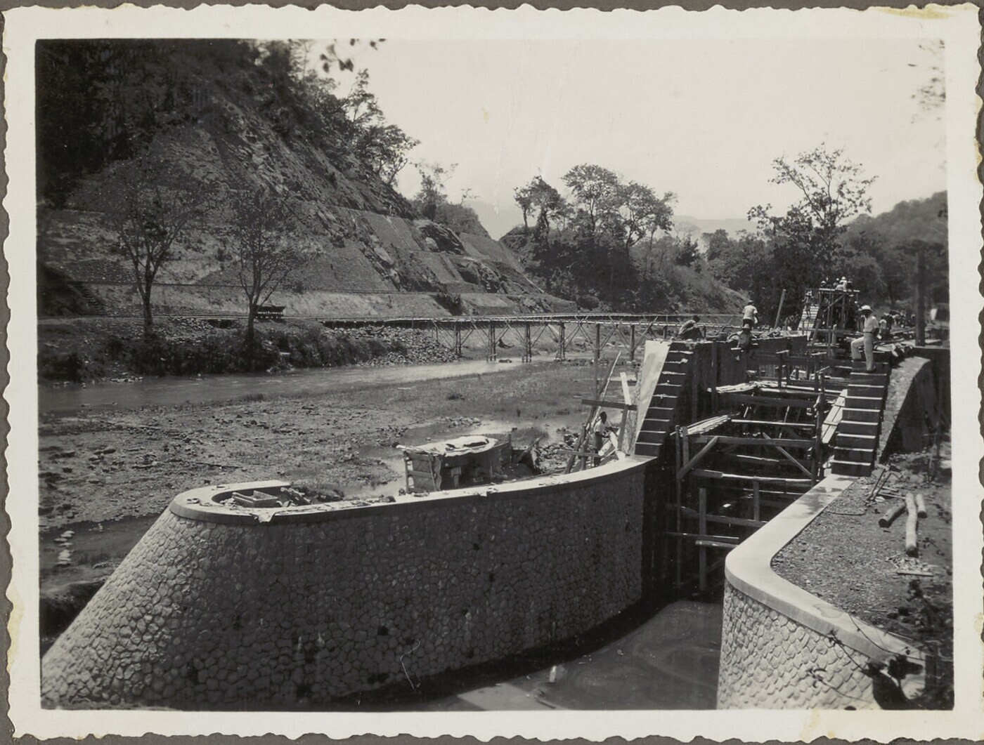 Bouw van een buis met woelbak door Javaanse arbeiders