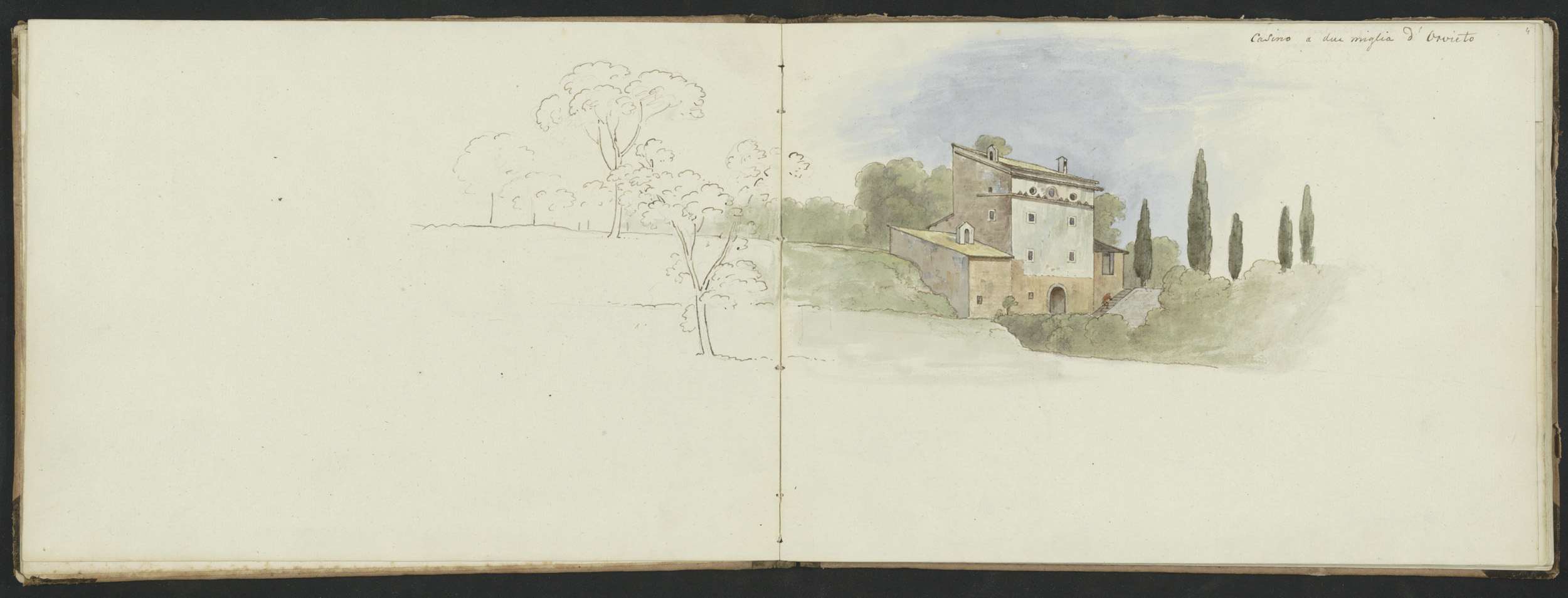 Landschap met bebouwing tussen Orvieto en Bagnoregio