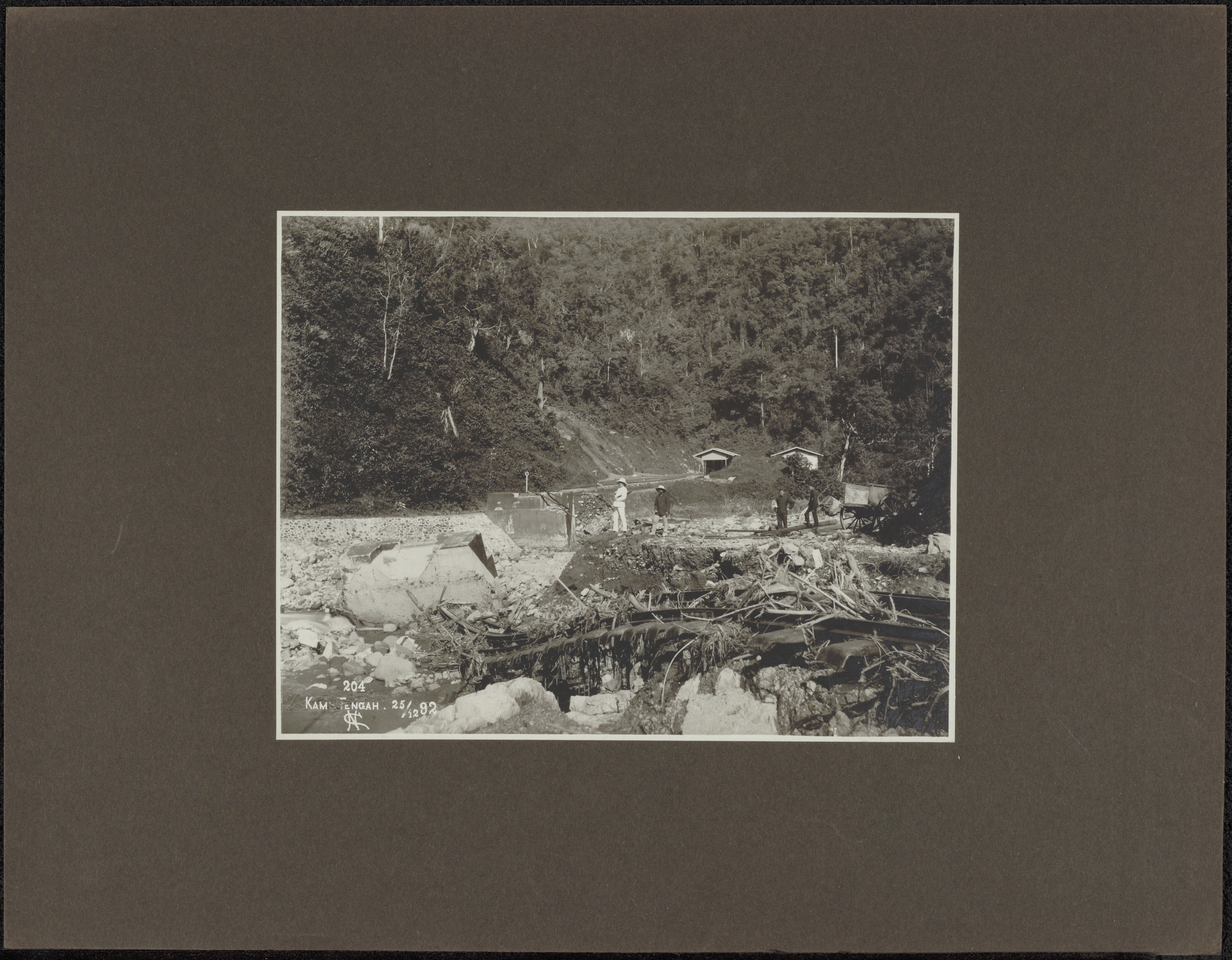 Station 'Kampong Tangah' tijdens de verwoesting Anai...