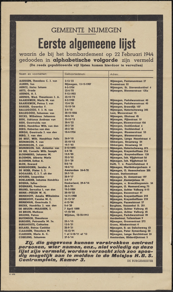 Nijmegen, 22 februari 1944; Lange Koningstraat, Cani...