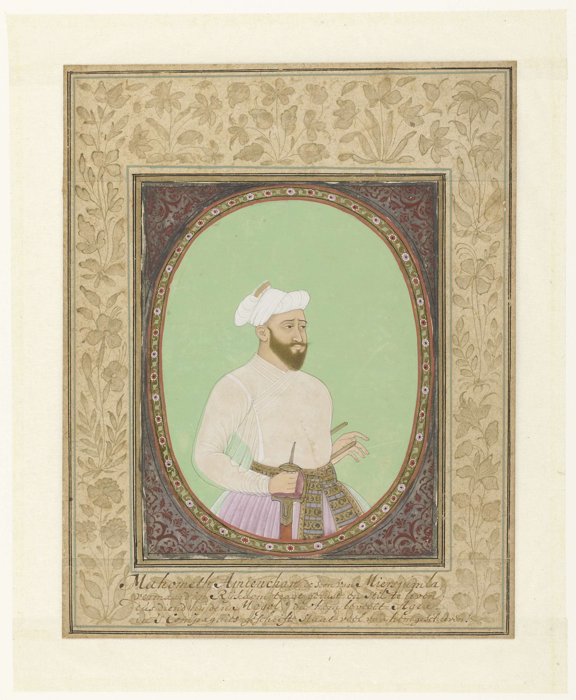 Portret van Muhammad Amin Khan met uitvoerig Holland...