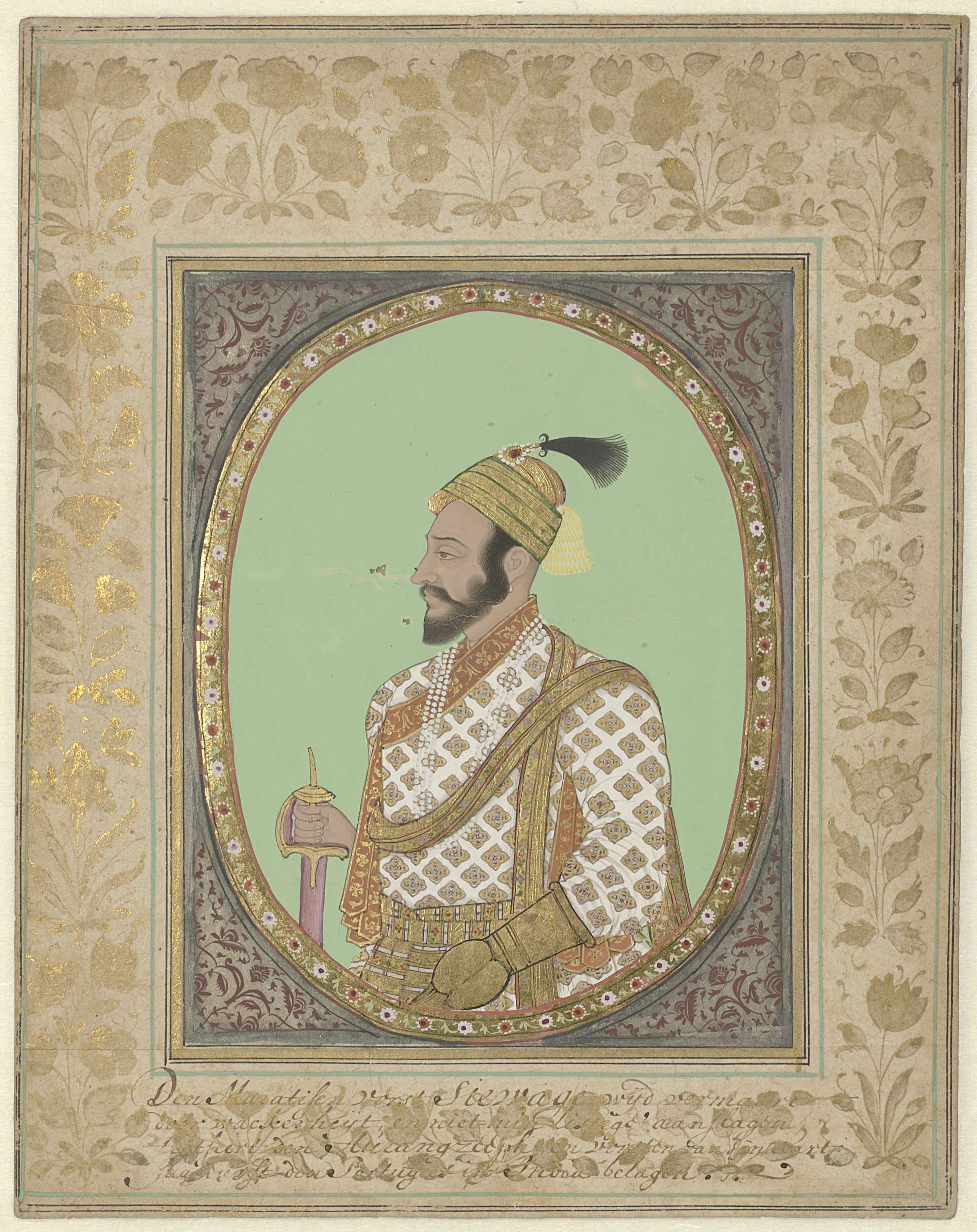 Portret van Maratha vorst Shivaji met uitvoerig Holl...