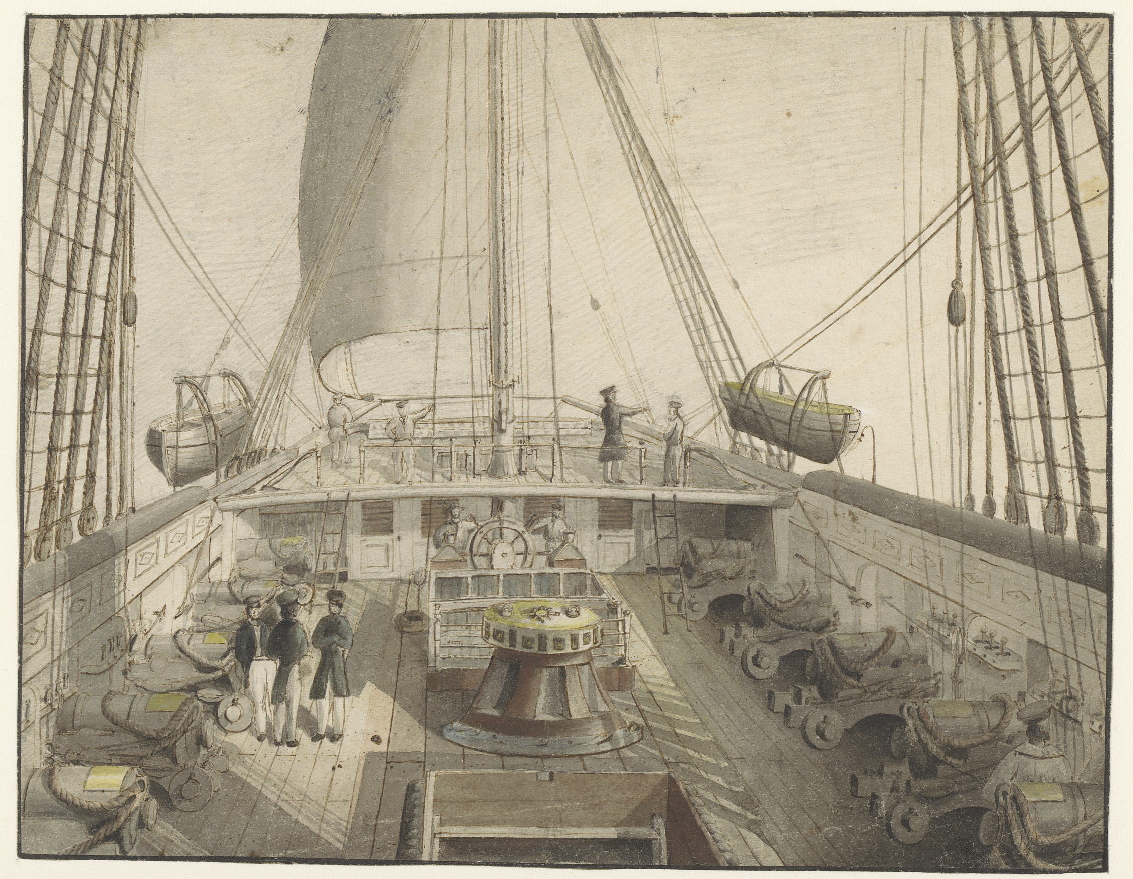 Gezicht op het dek van een oorlogsschip