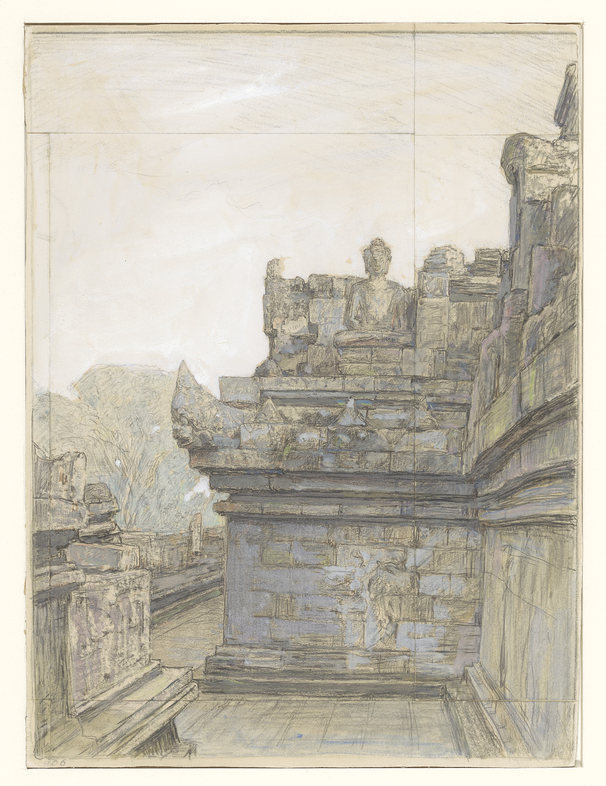 Gezicht op een van de terrassen van de Borobúdur