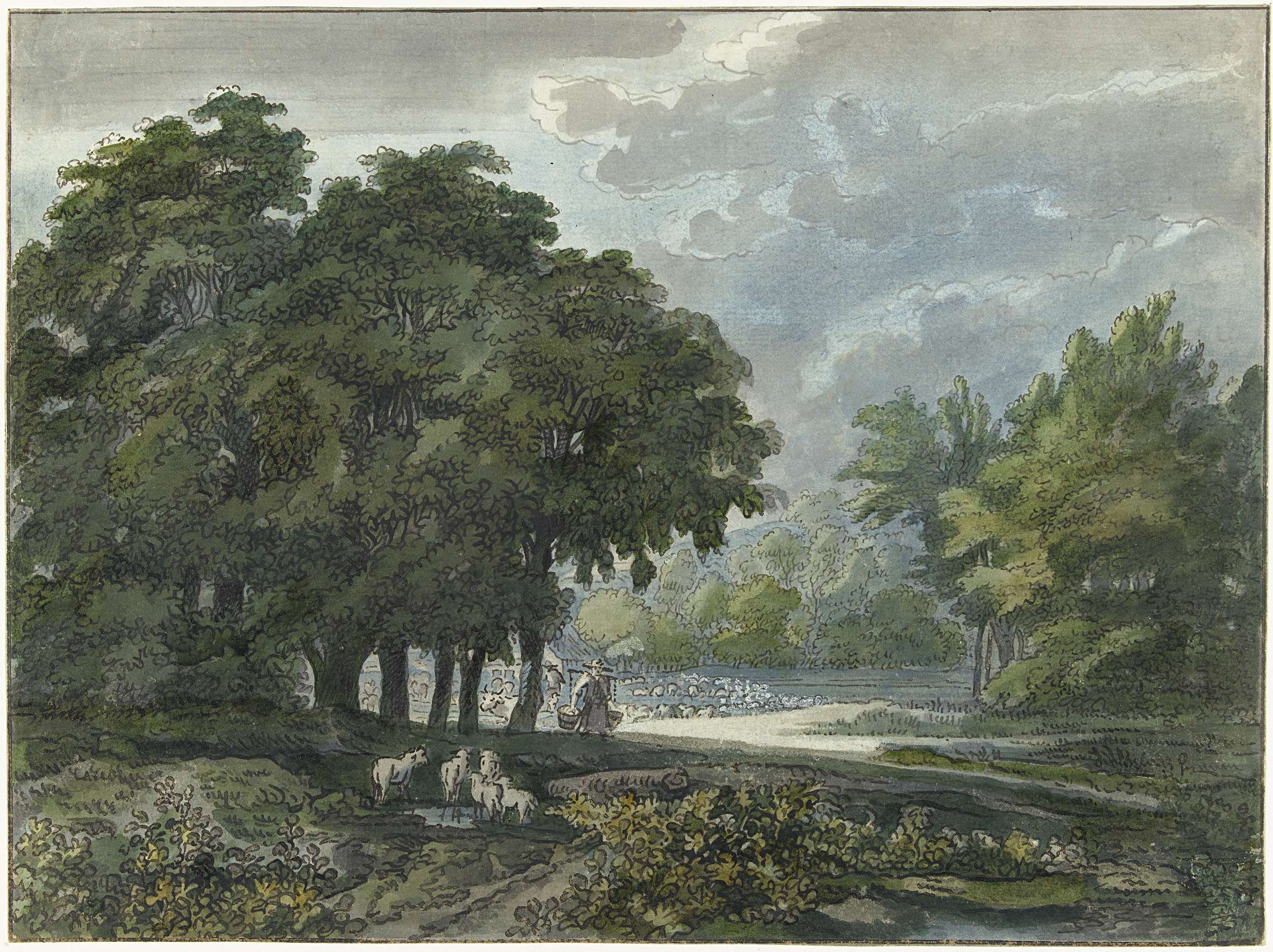 Herders met kudde in bosrijk landschap