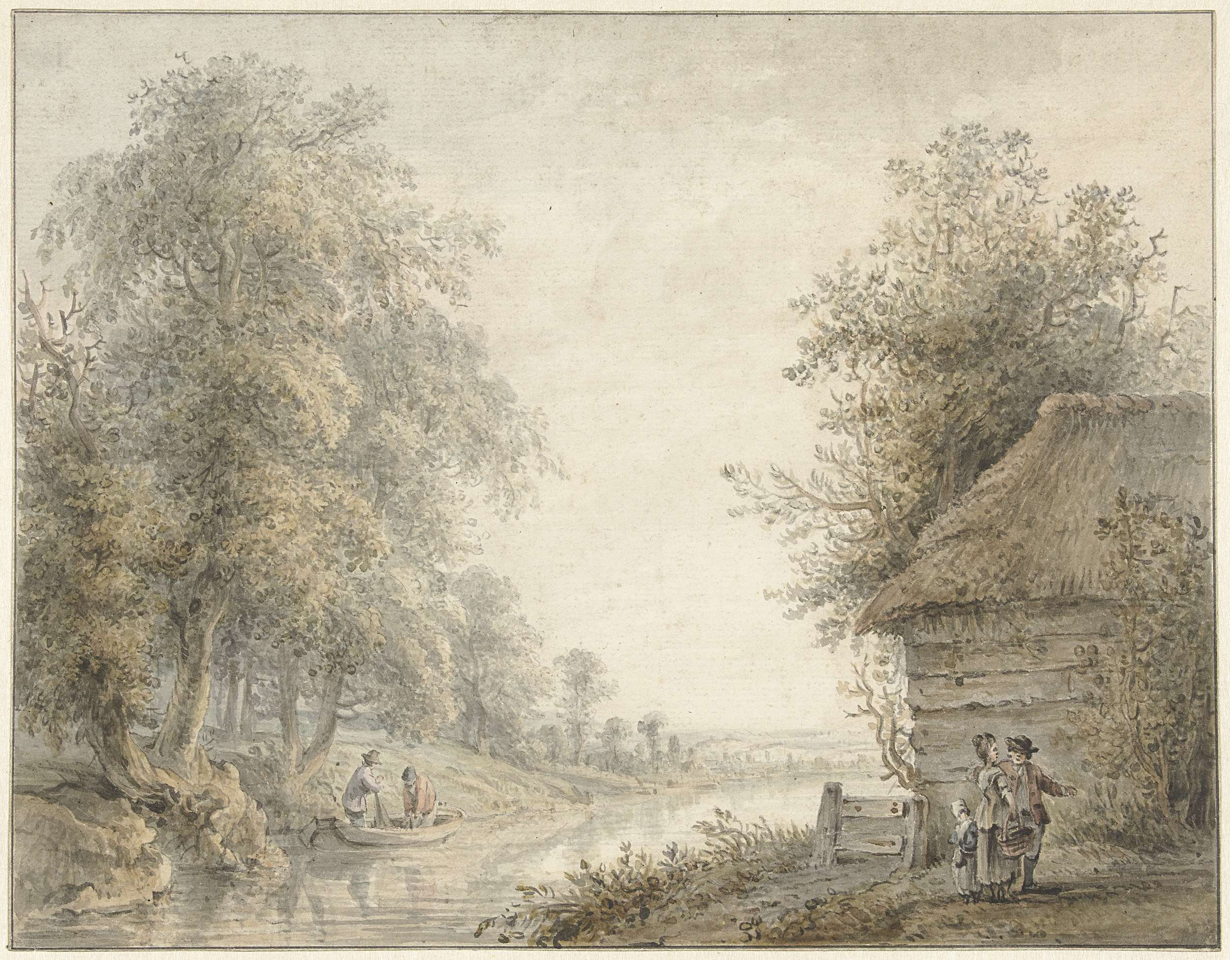 Boerenschuur bij een vaart aan een boszoom